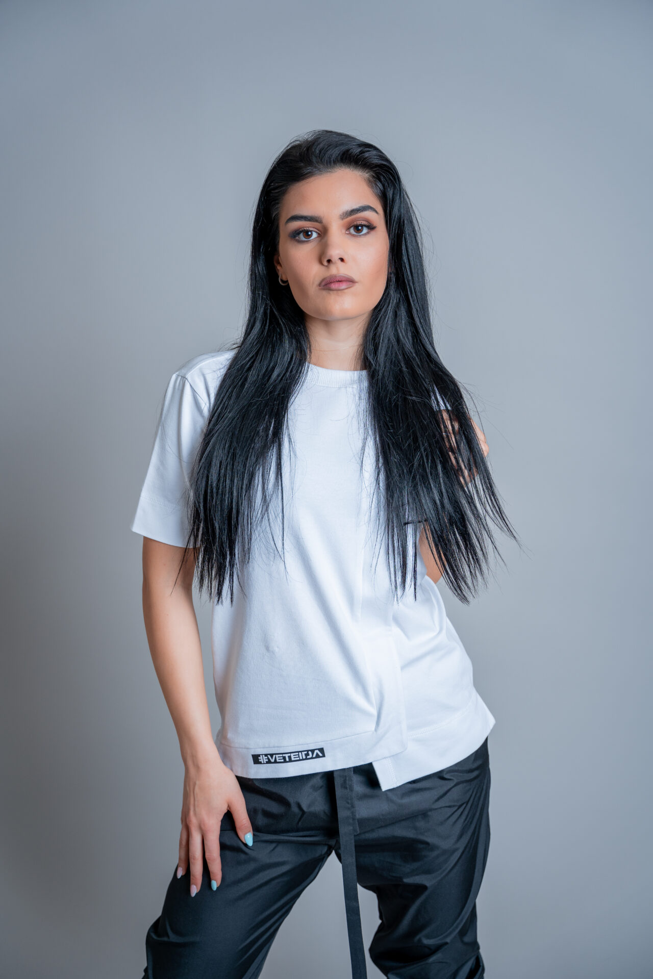 Асиметрична дамска тениска veteida white-556