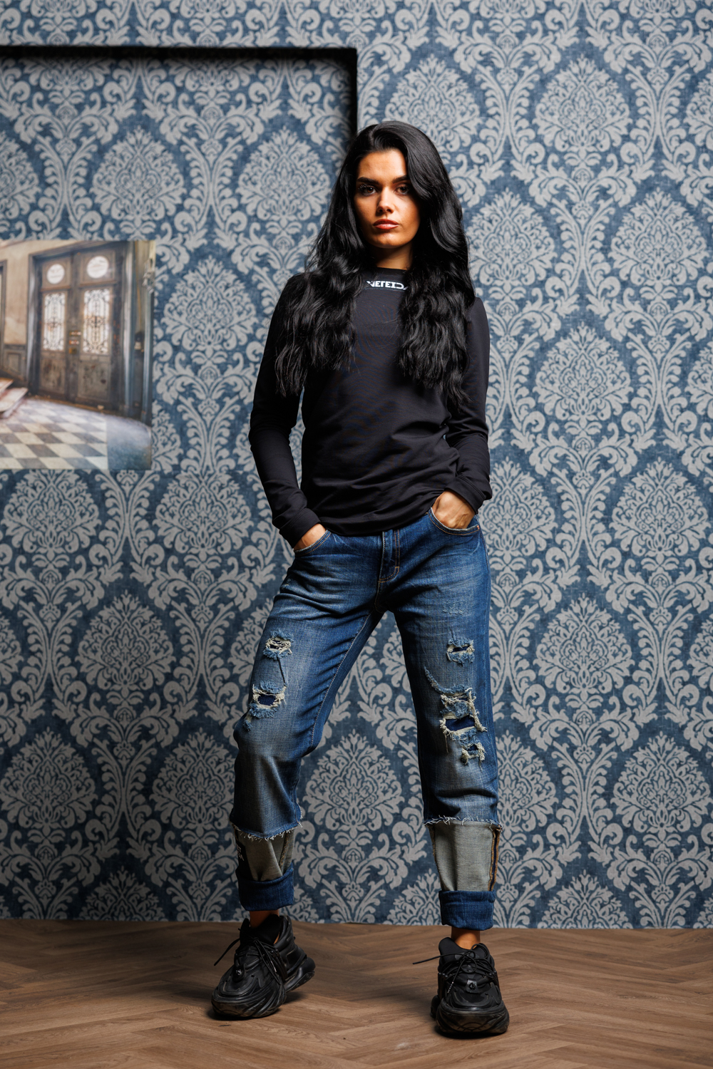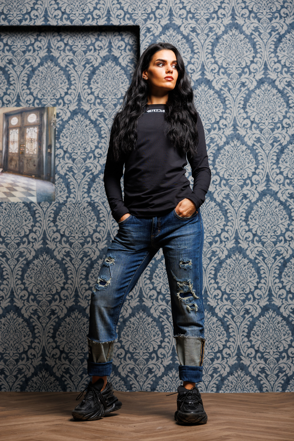 Дамска модерна блуза veteida black-605