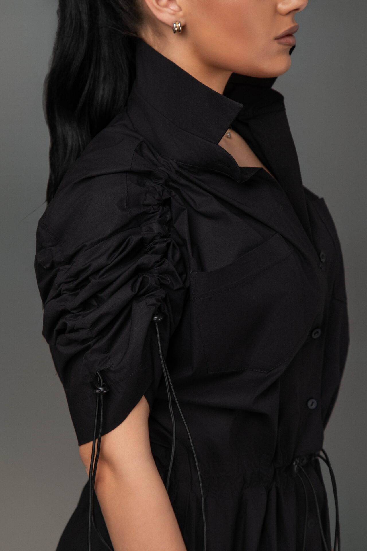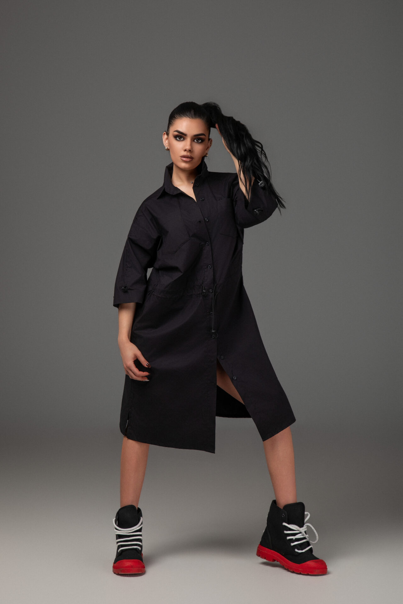 Фината бродерия придава изискан детайл и уникално дизайнерско излъчване на тази модерна риза рокля.