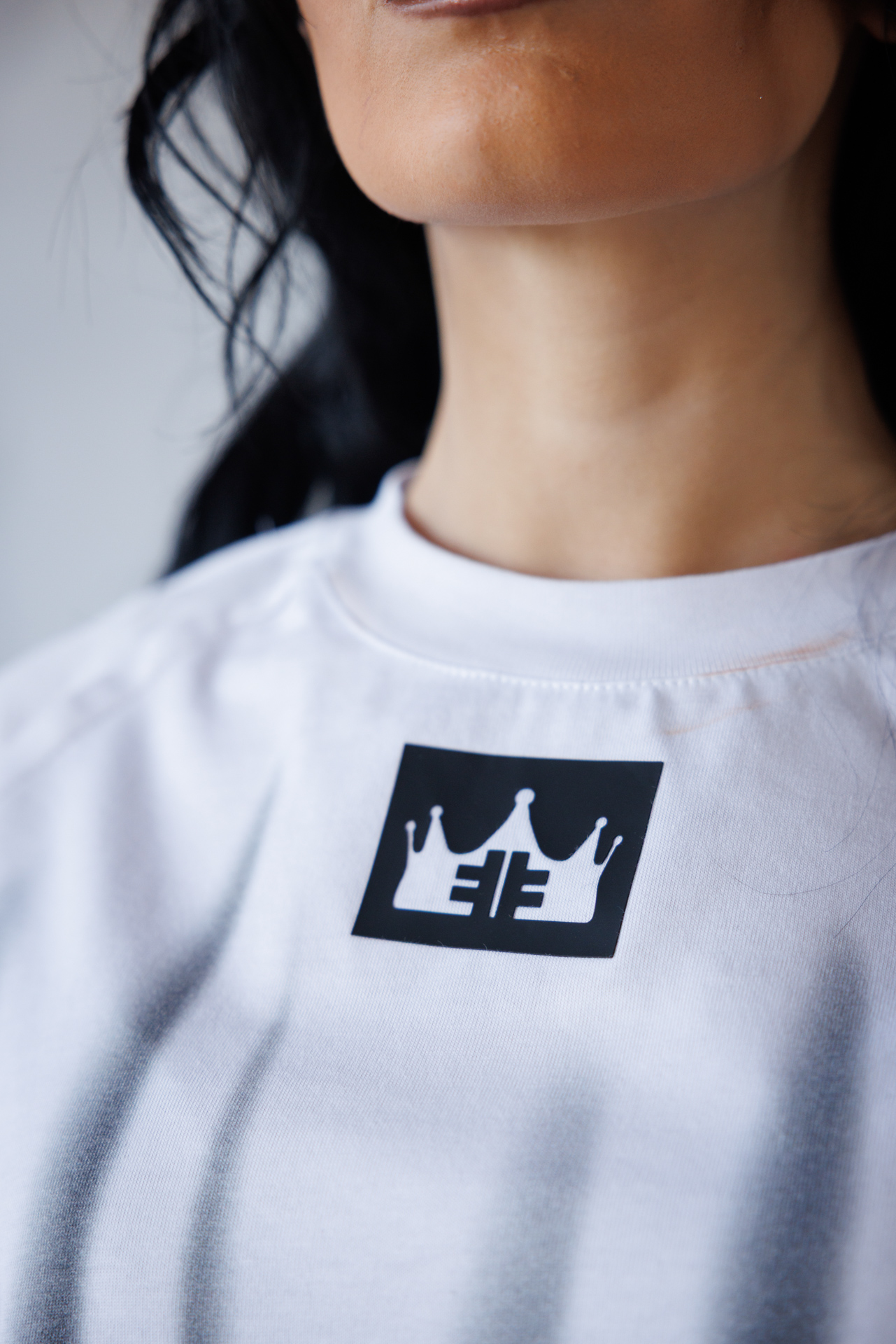 Принтът върху тениската има размазан ефект, който създава усещането за движение и динамика.