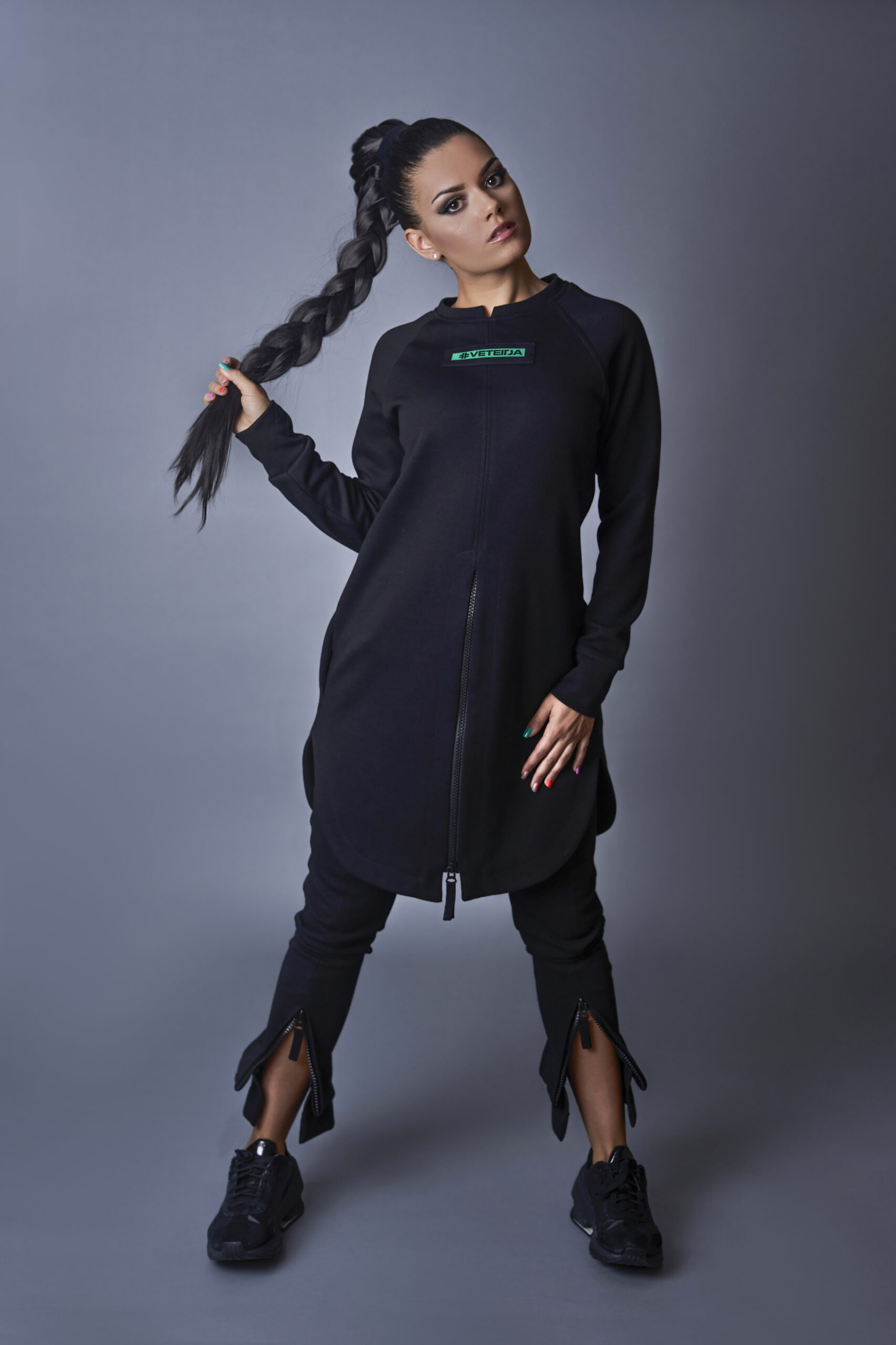 Дамска туника с ефектни ципове-463
