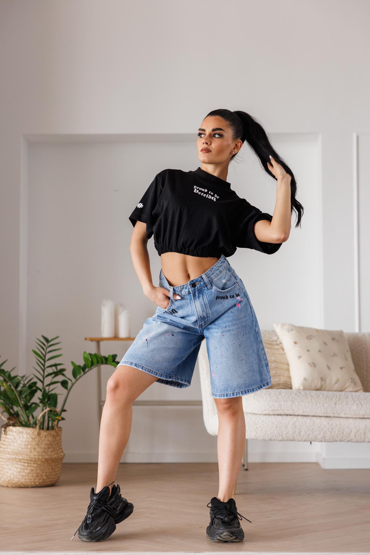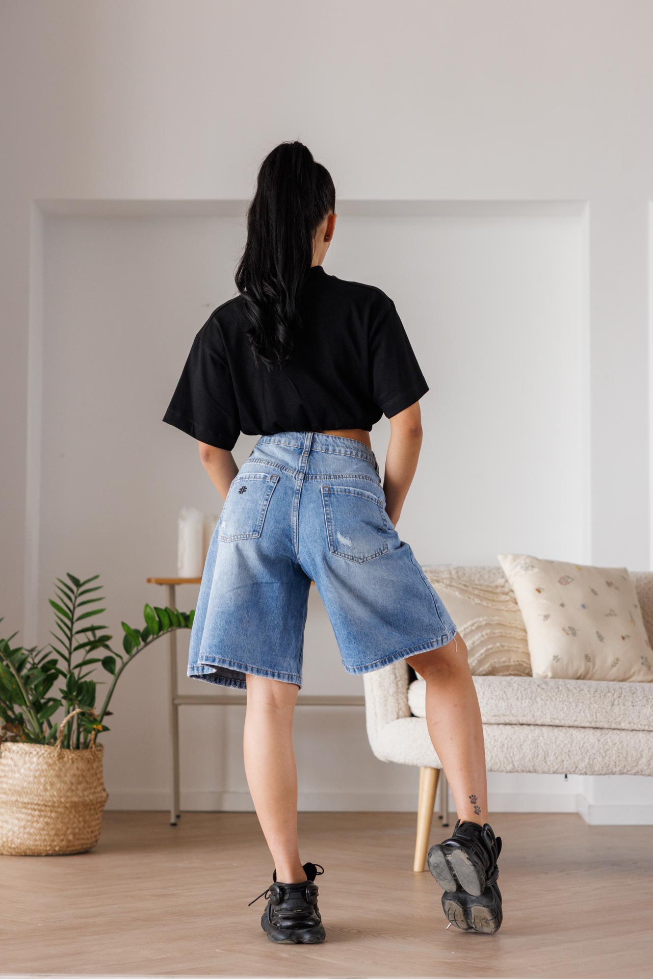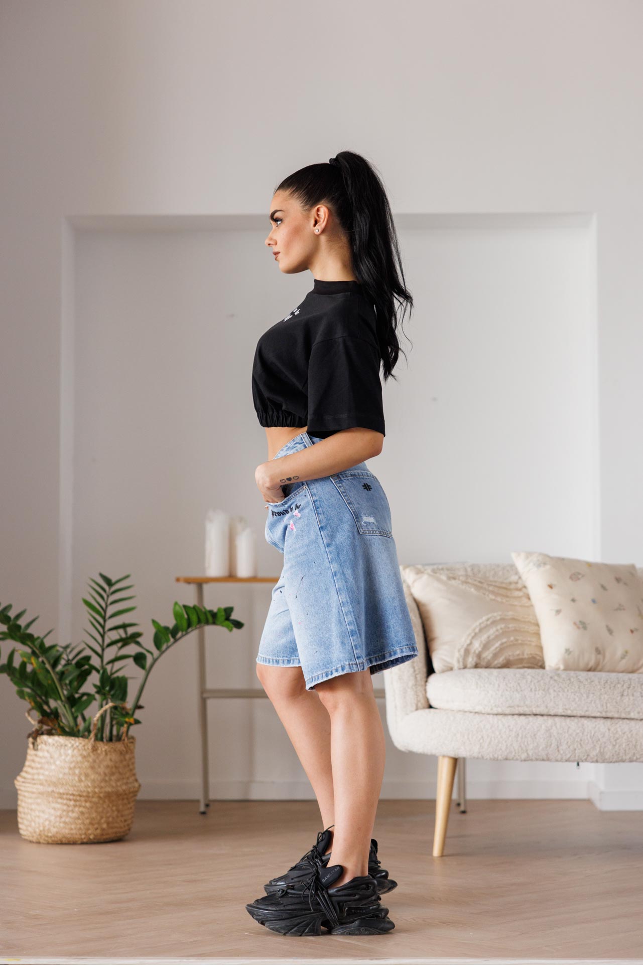 • Изработени от висококачествен деним, тези бермуди комбинират уличен стил с артистична визия.