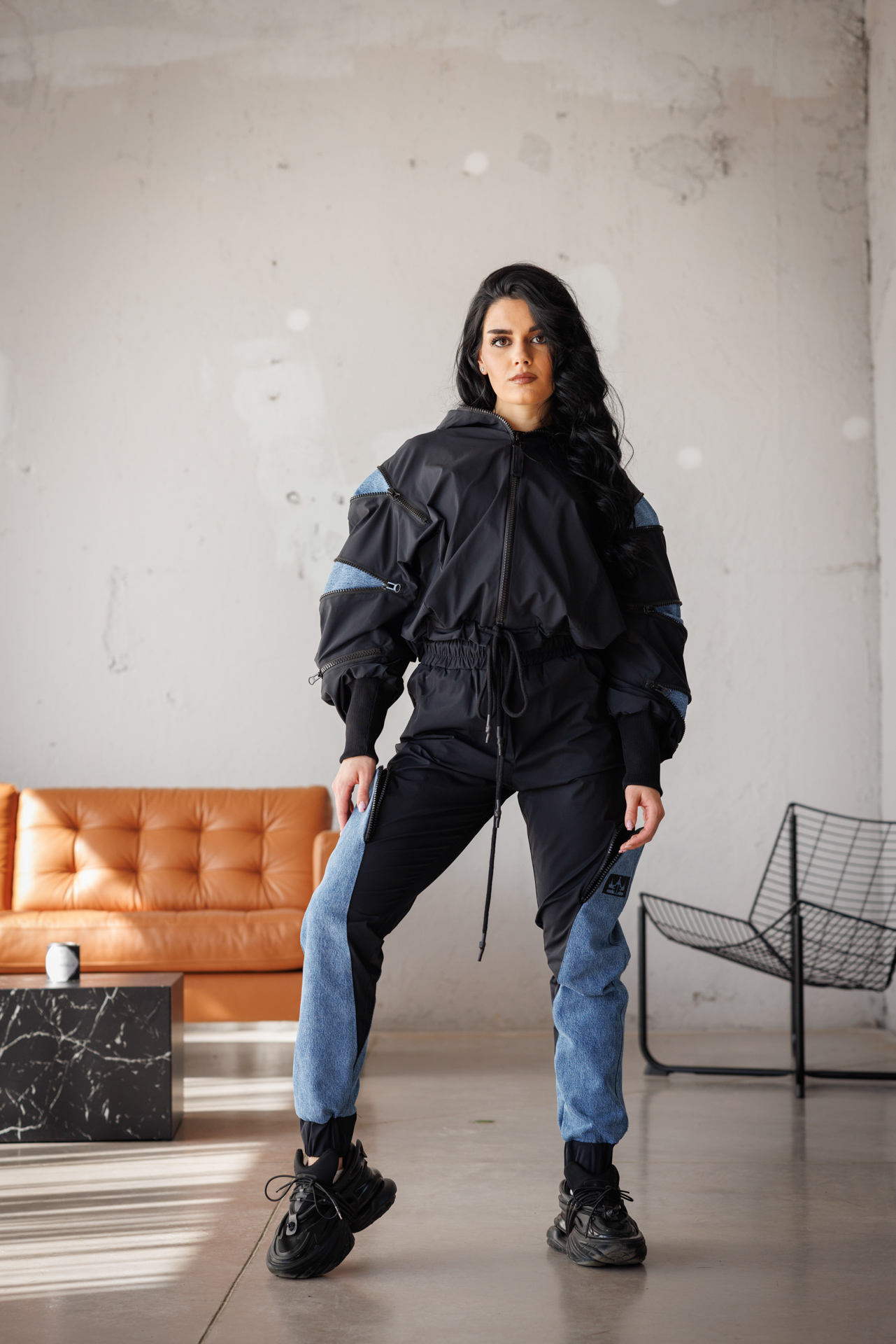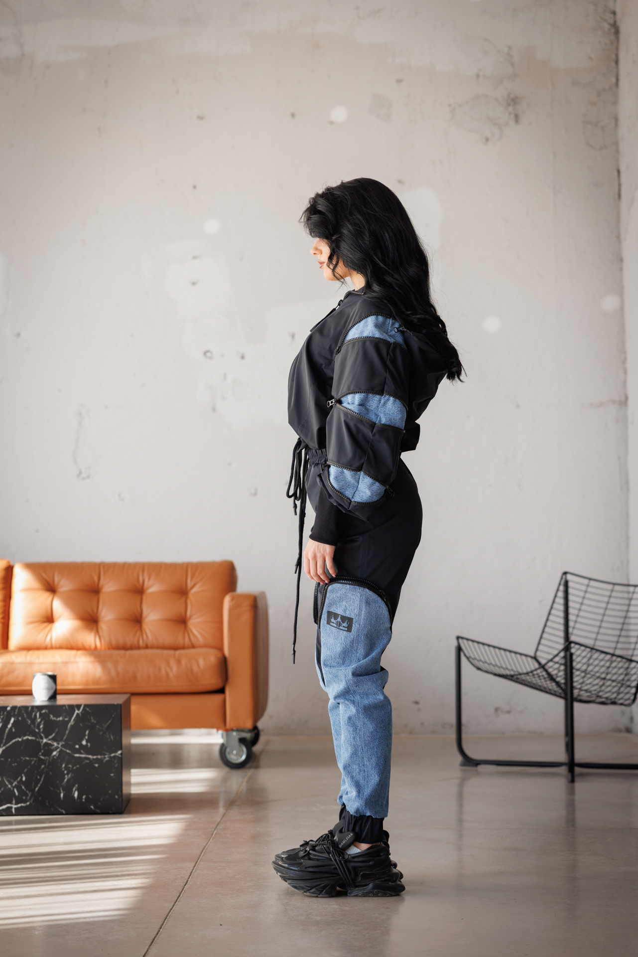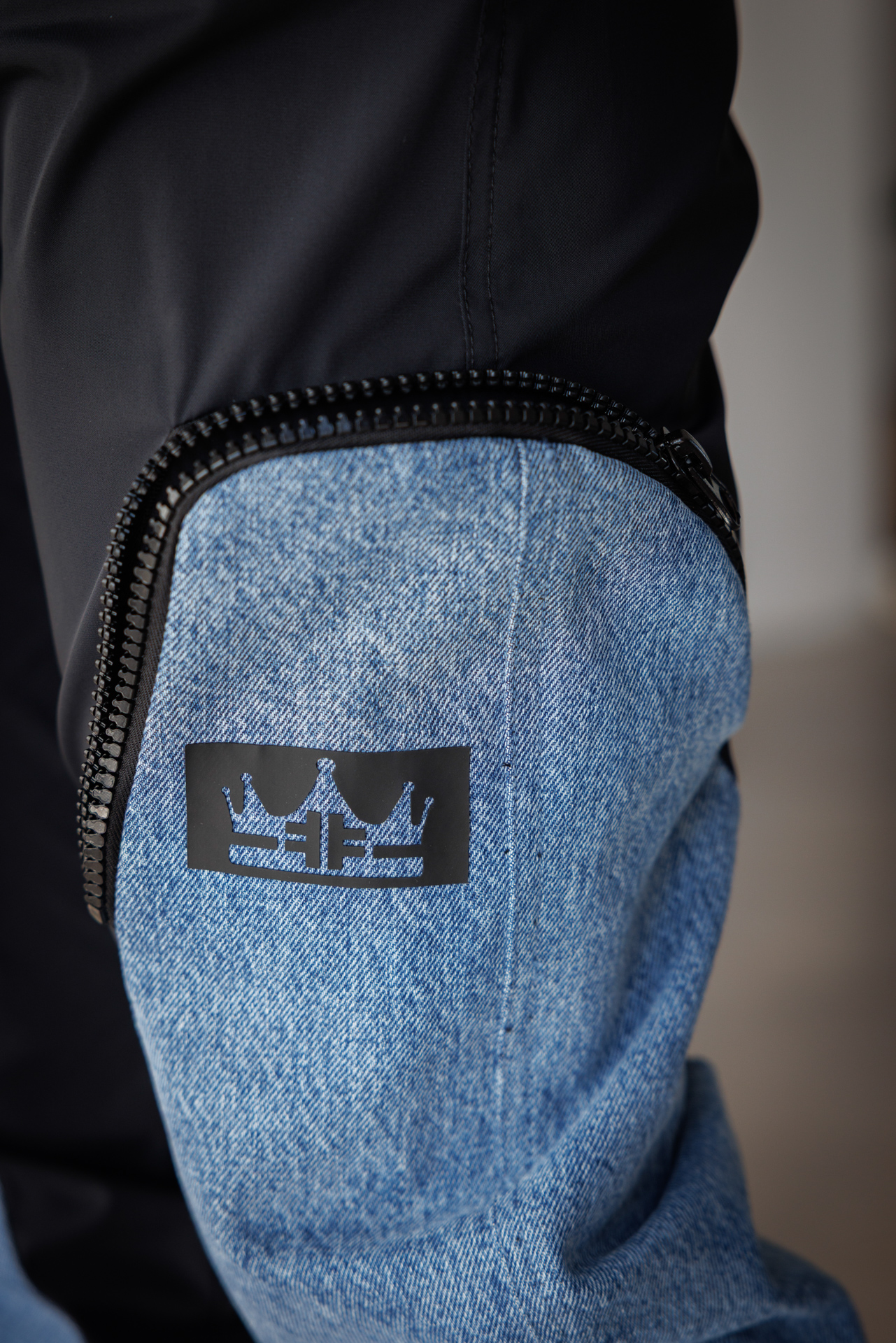Основната част от панталона е изработена от мек шушляк, комбинирана с дънкови вложки или детайли, които придават стил и характер.