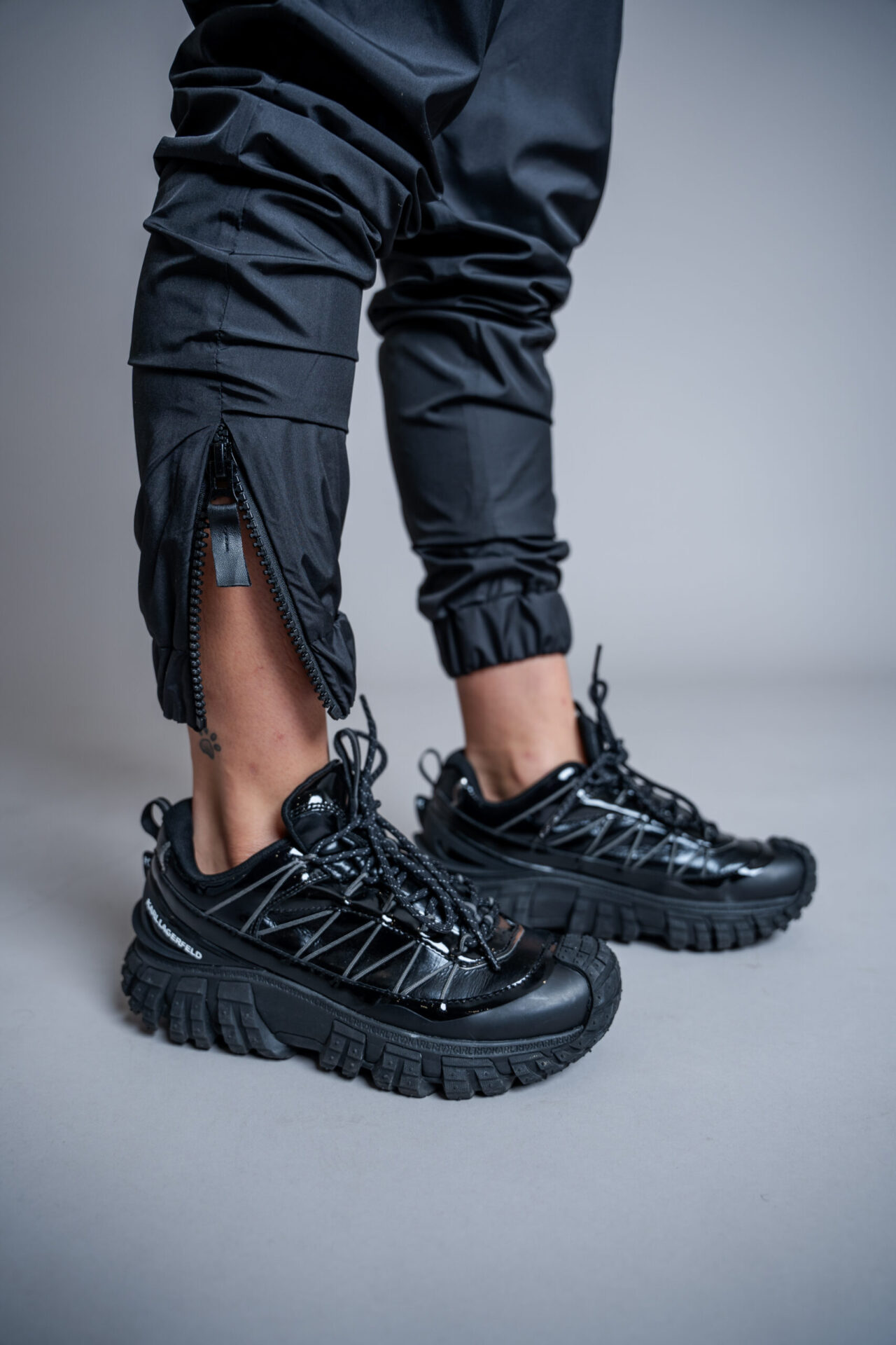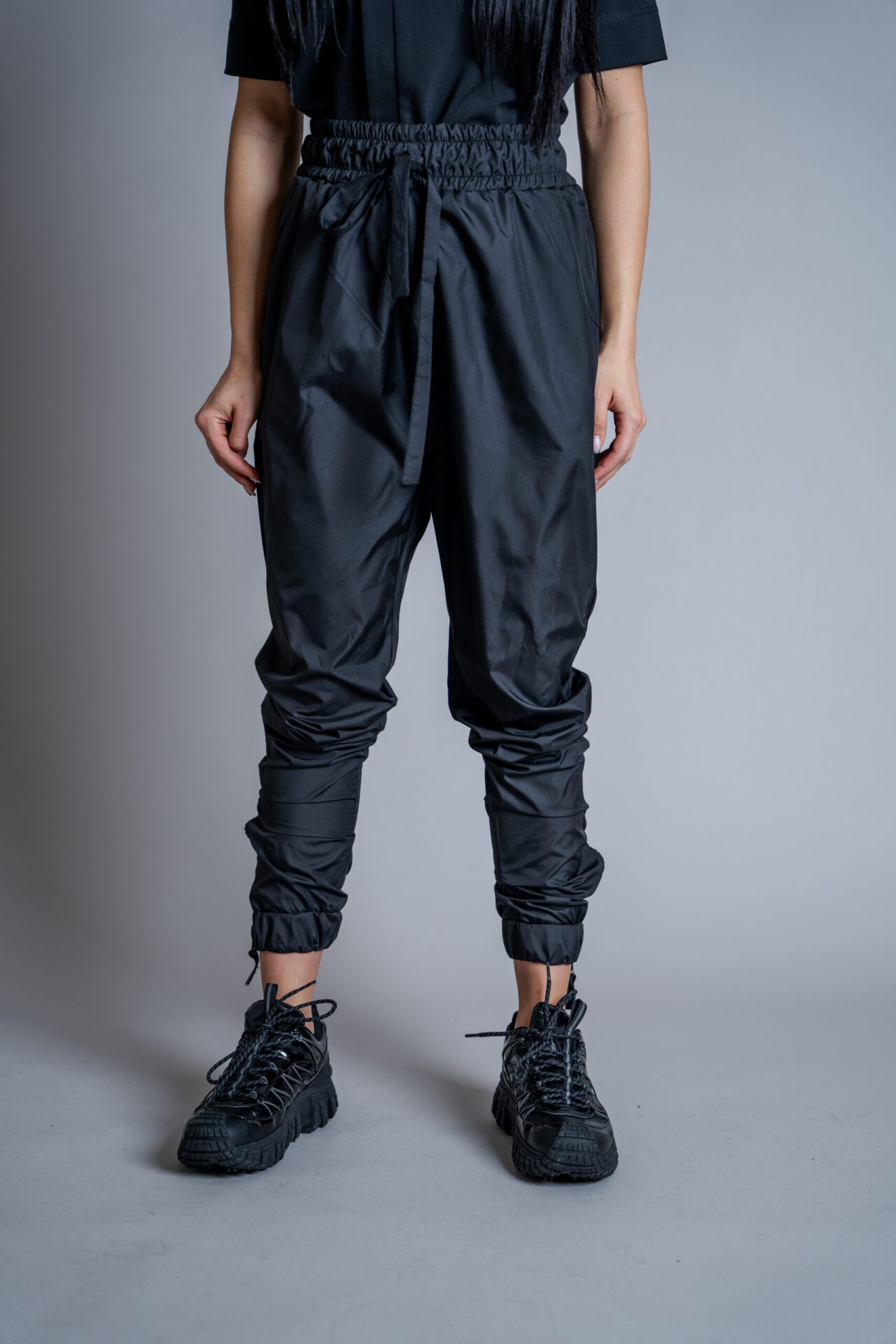 Панталона се откроява с ластик на талията, ципове на крачолите, принт на джоба.