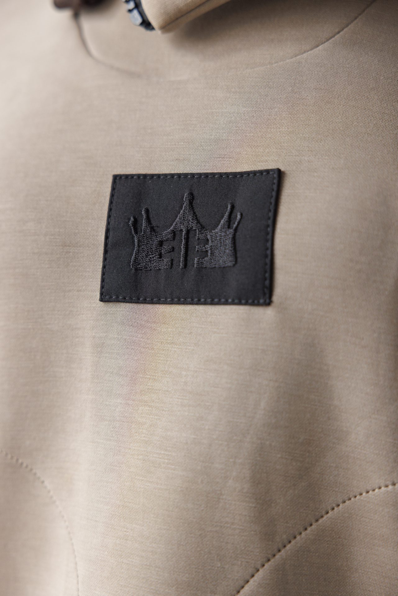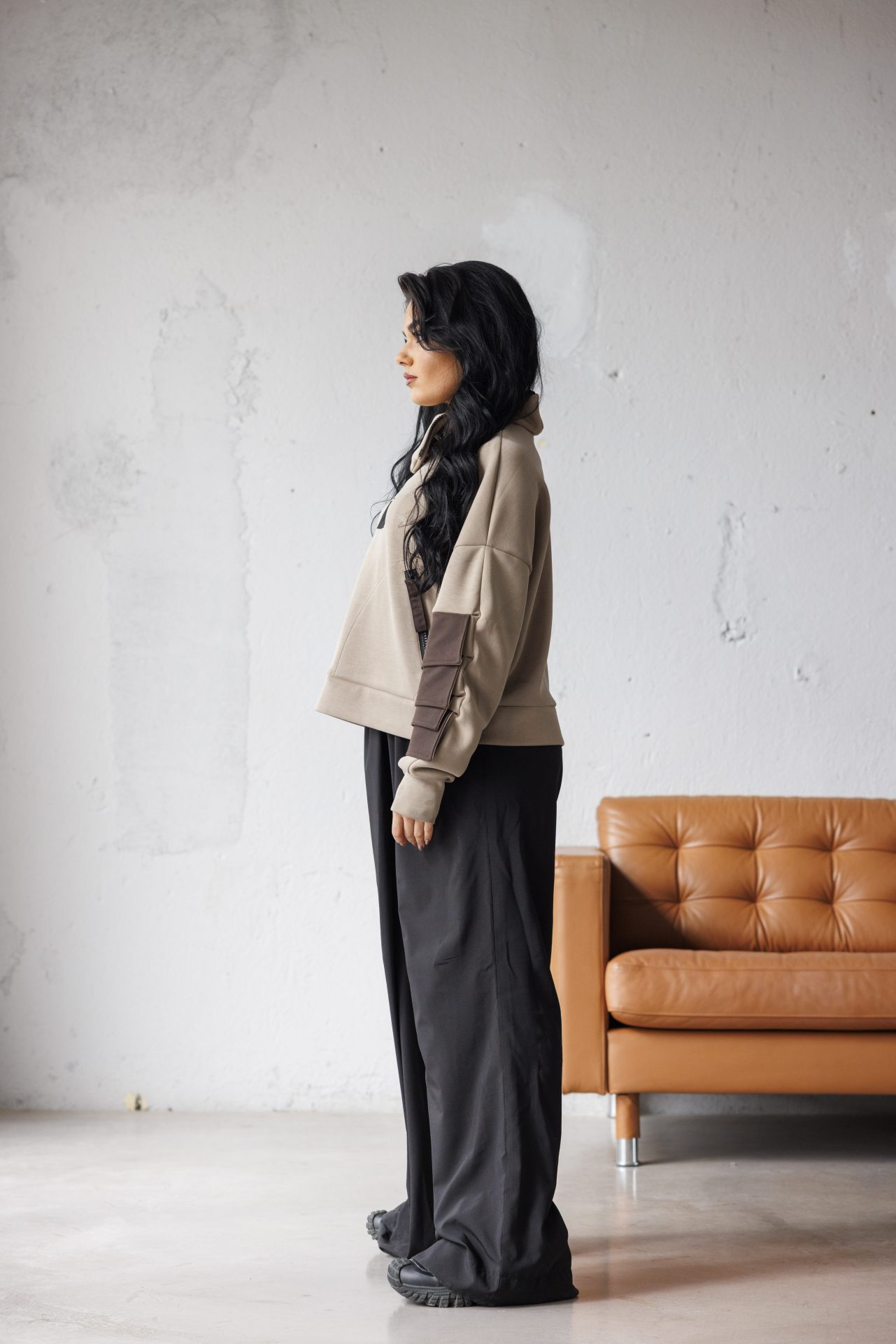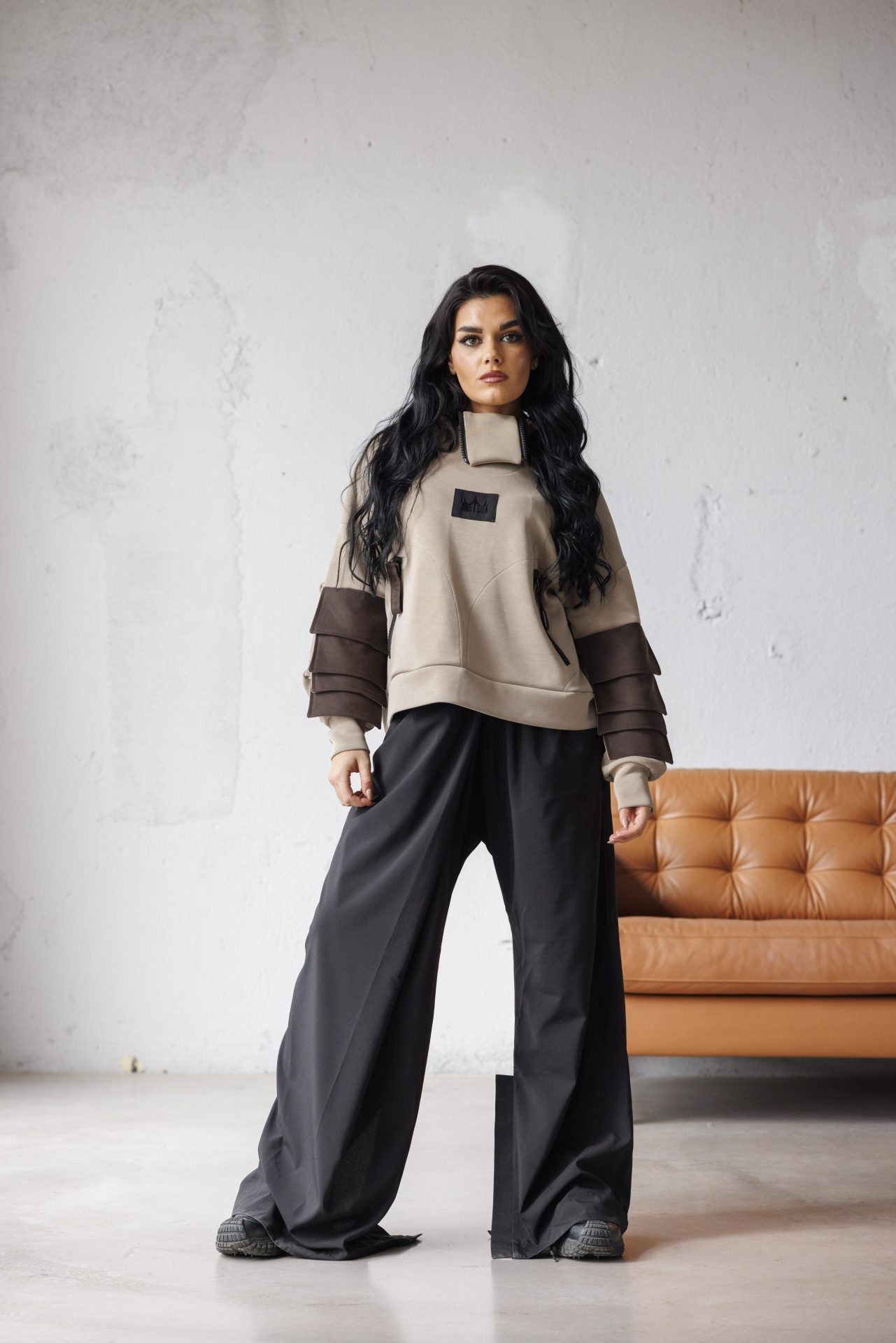 Дамски спортно елегантен суитшърт с качулка с кафяви мотиви-672