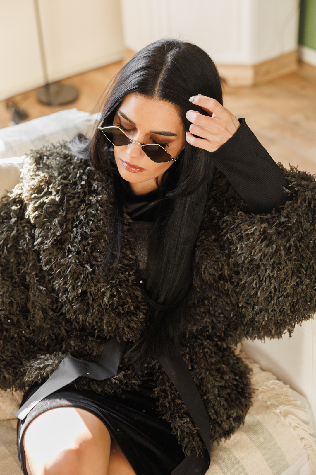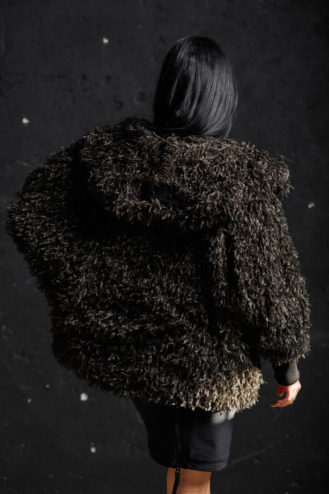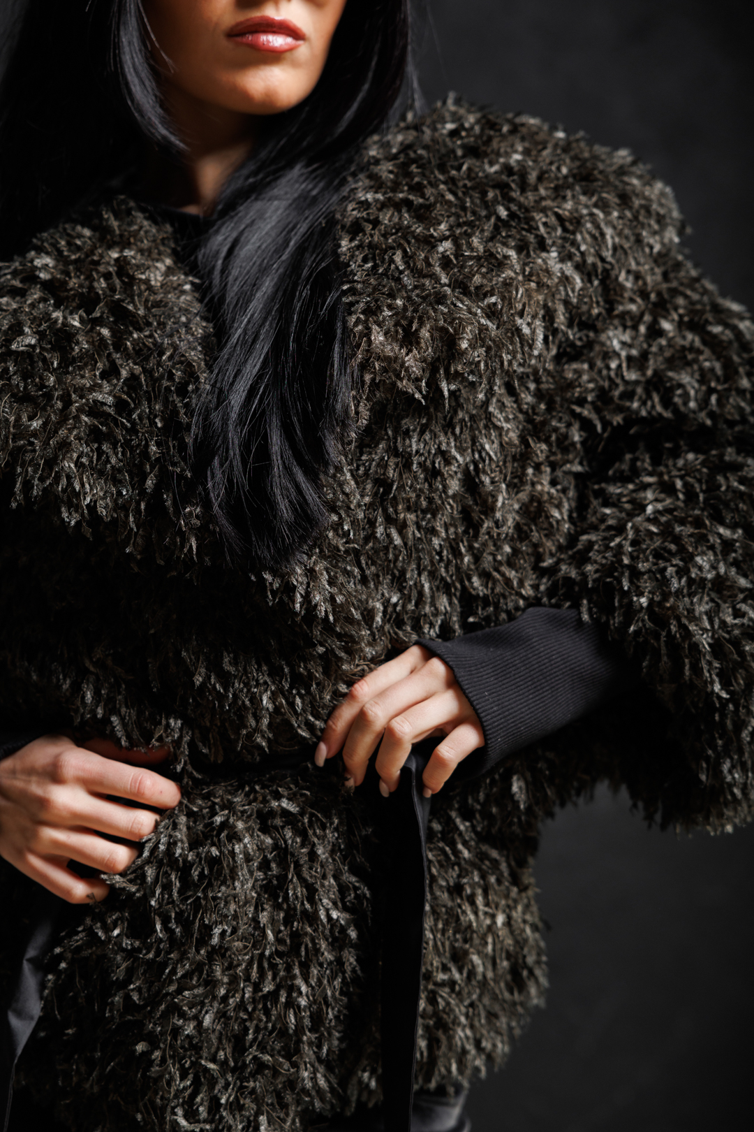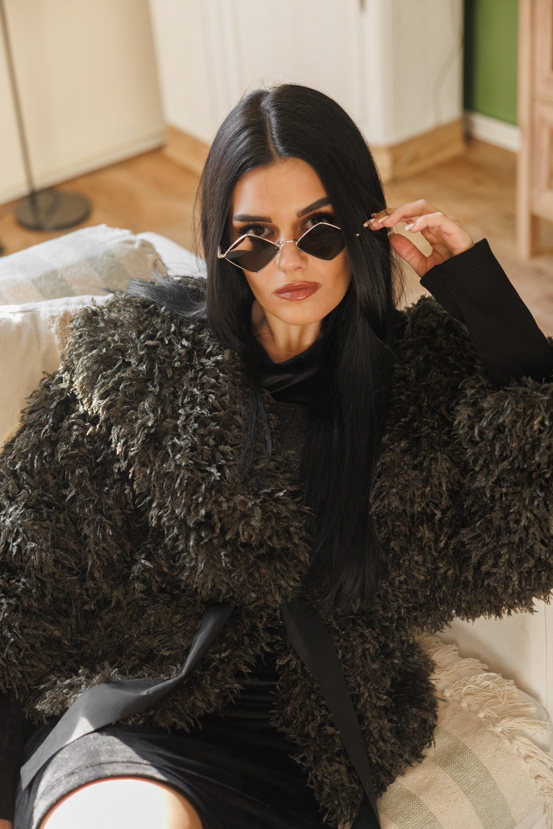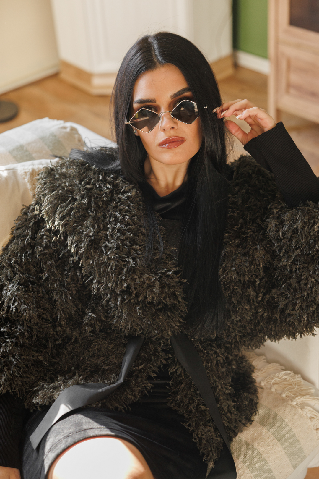 Дамско дизайнерско палто с косъм в зелено-617