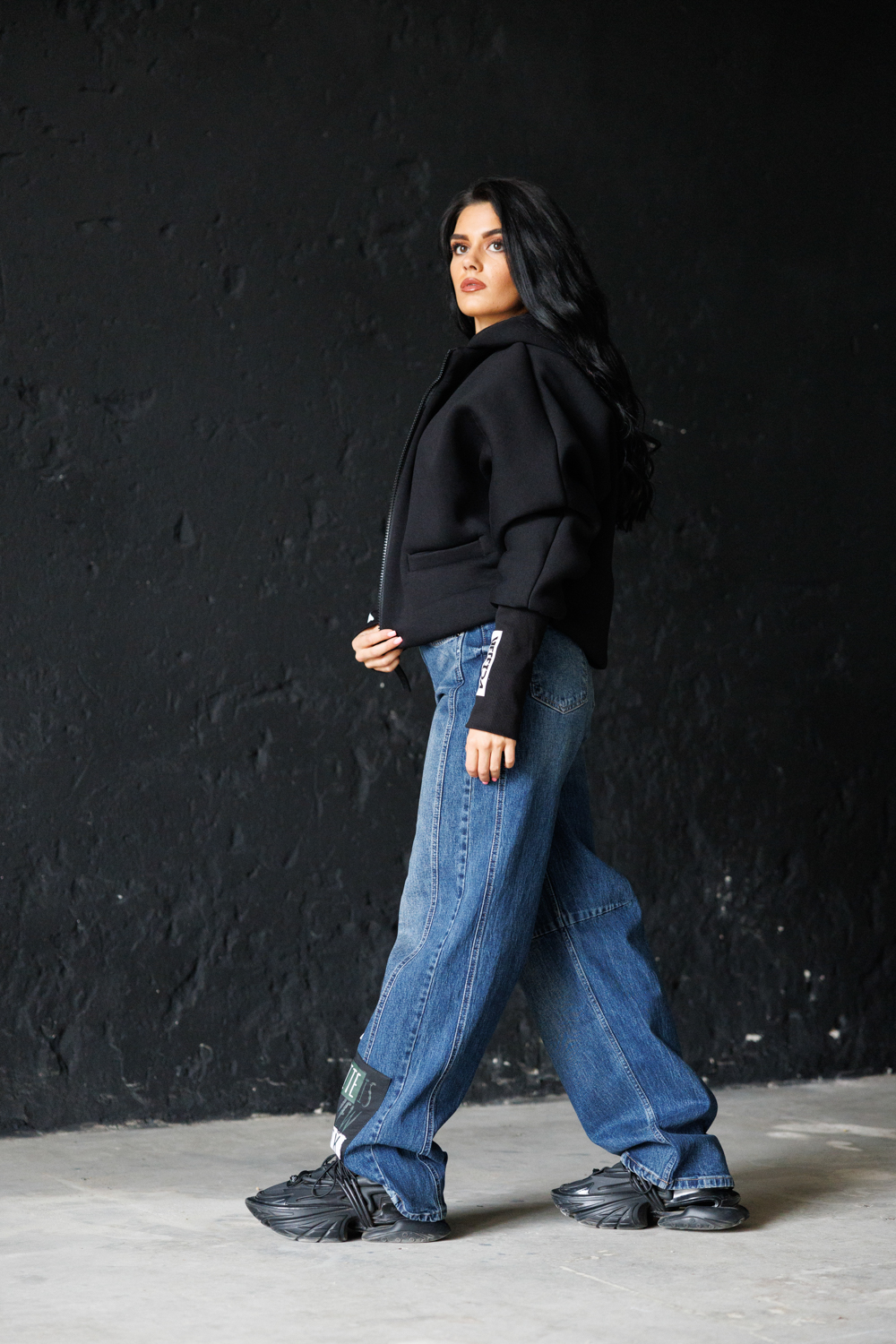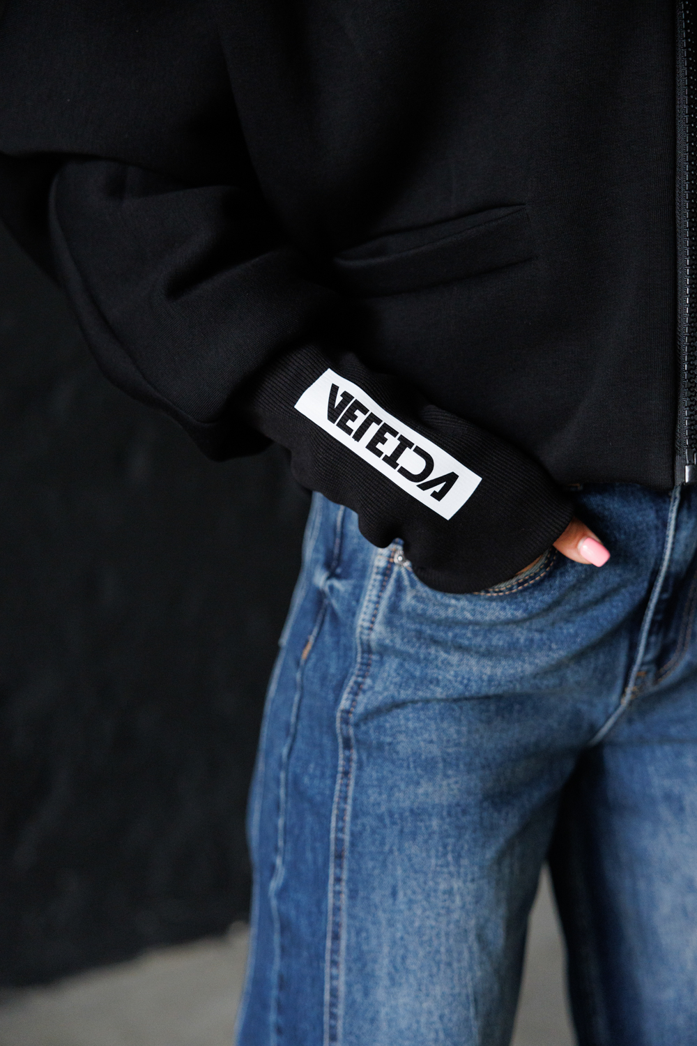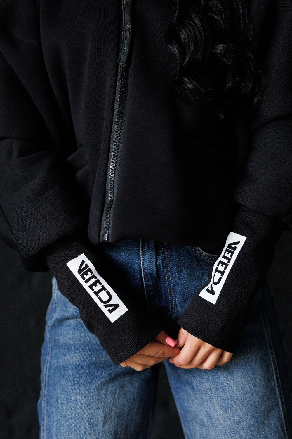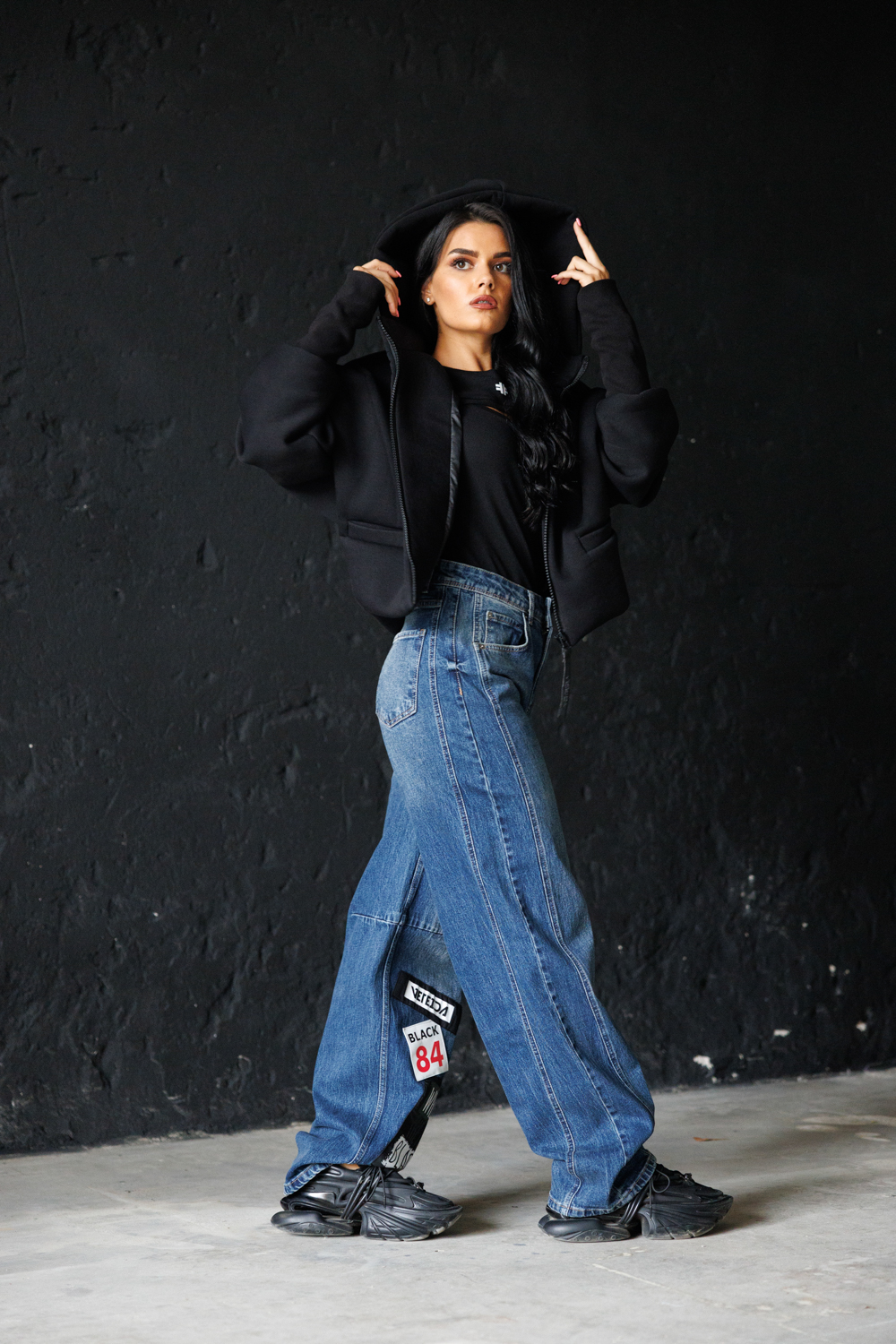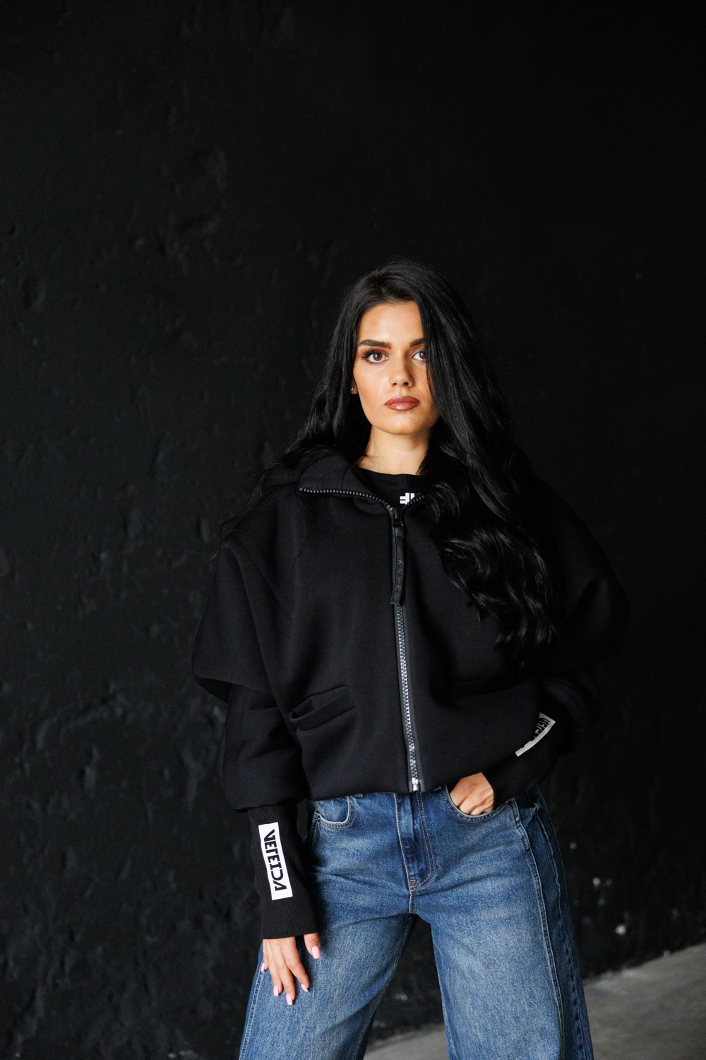 Дамско дизайнерско яке с голяма качулка veteida black-589
