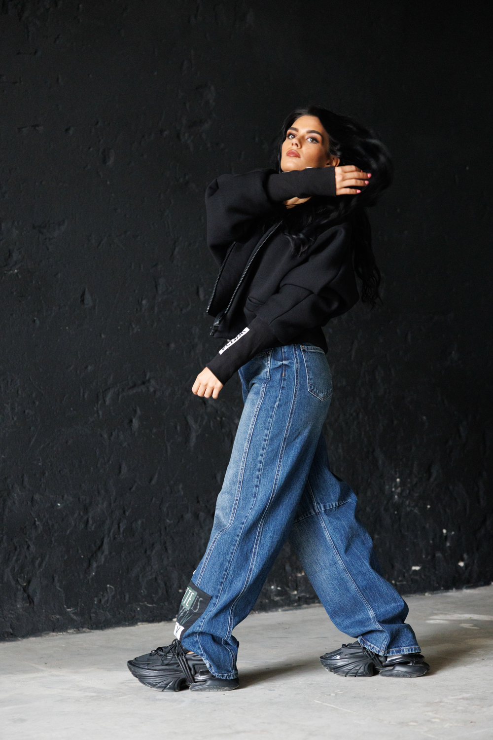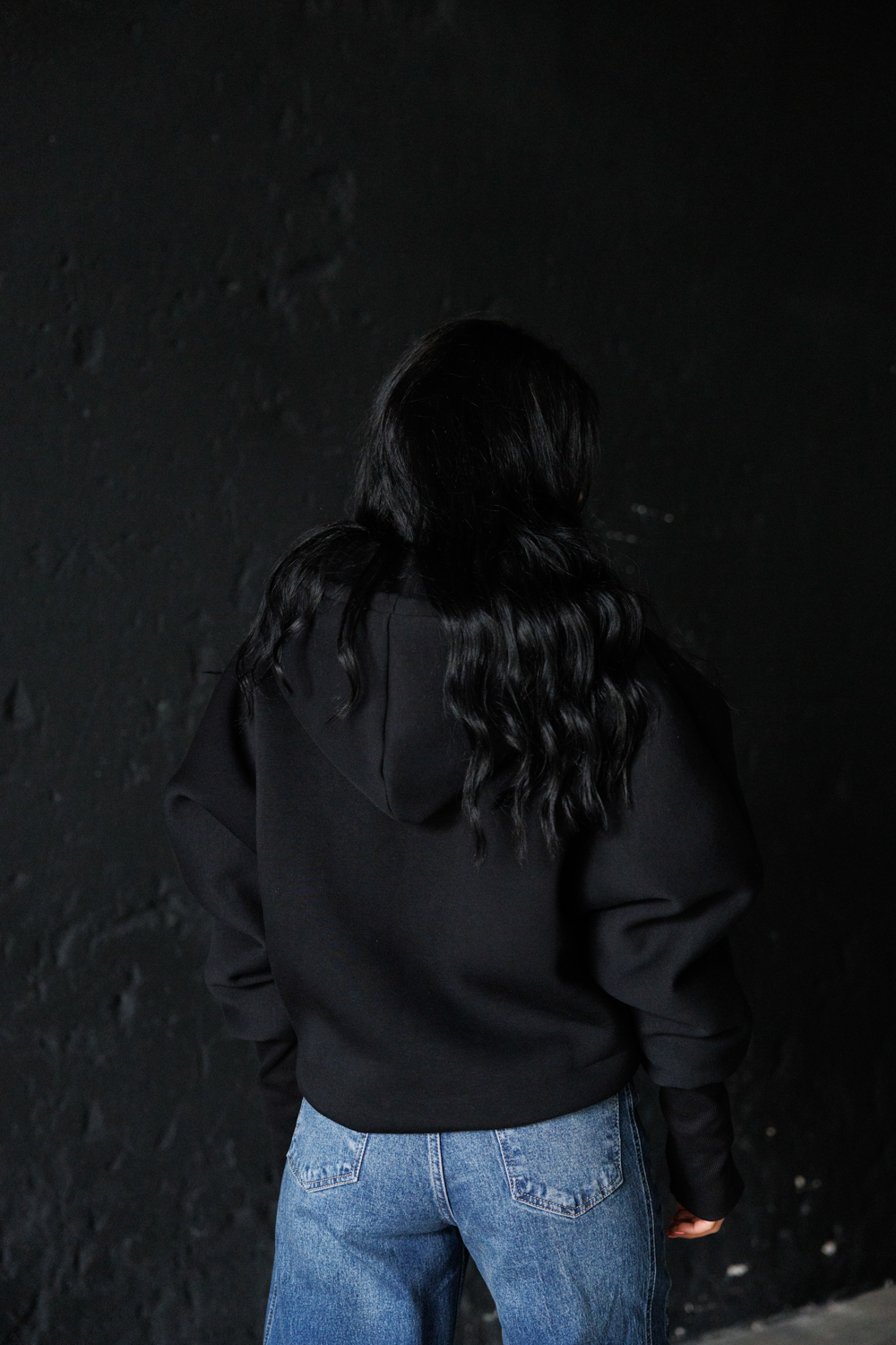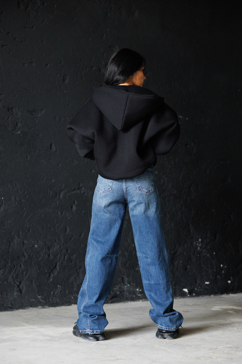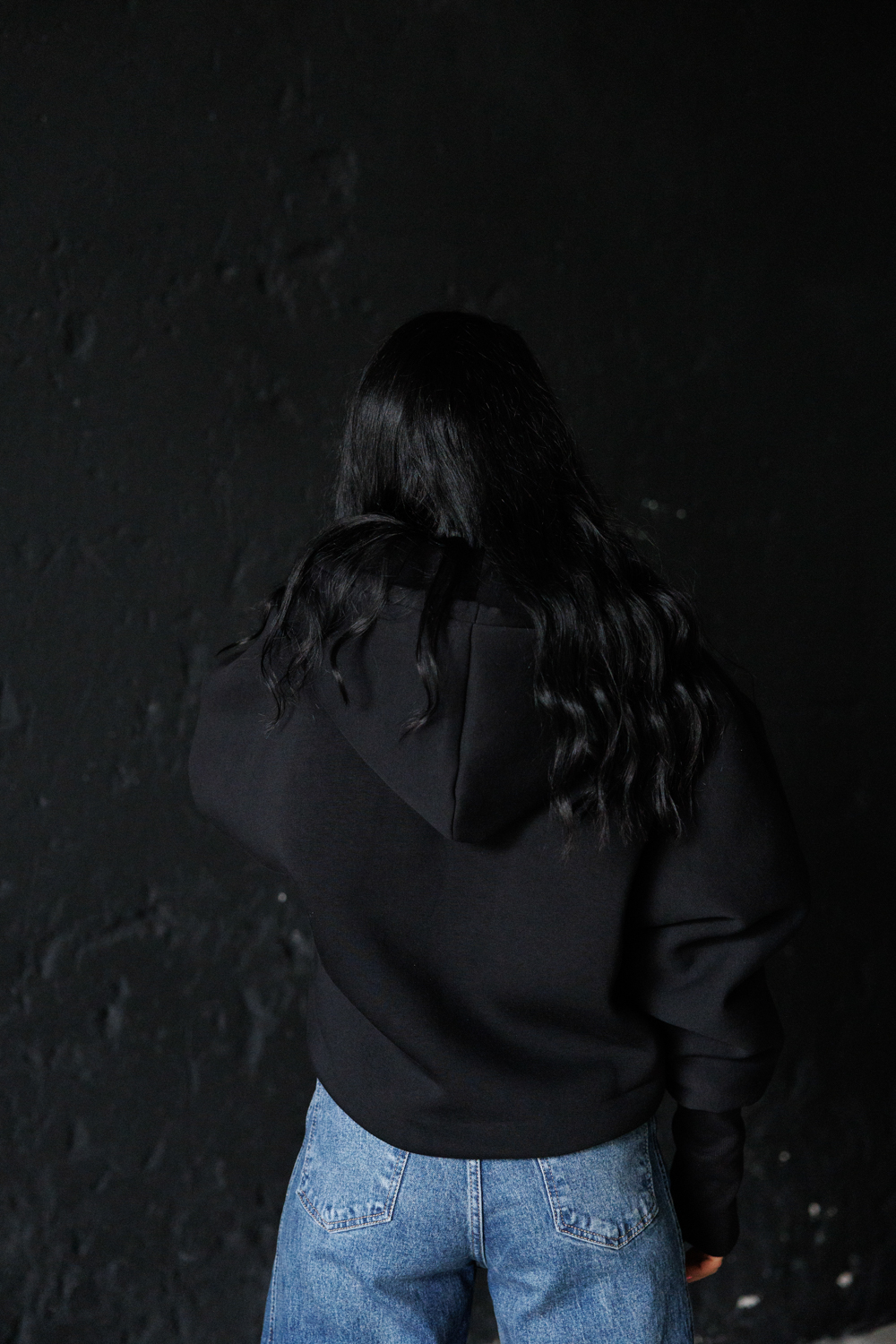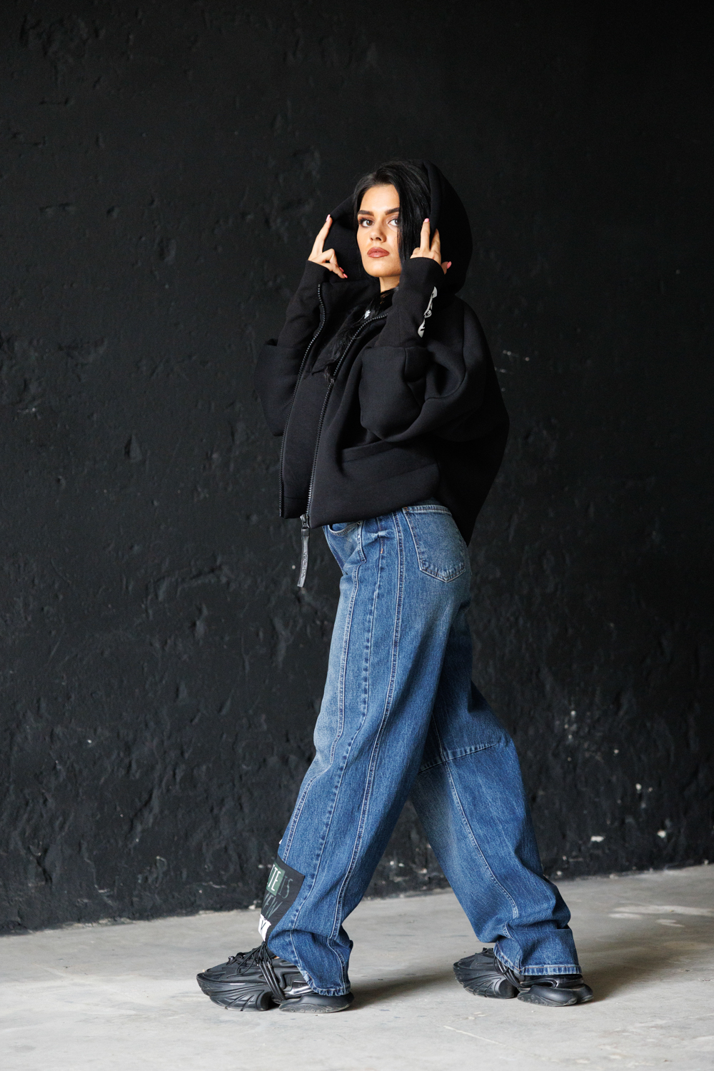 Дамско дизайнерско яке с голяма качулка veteida black-589
