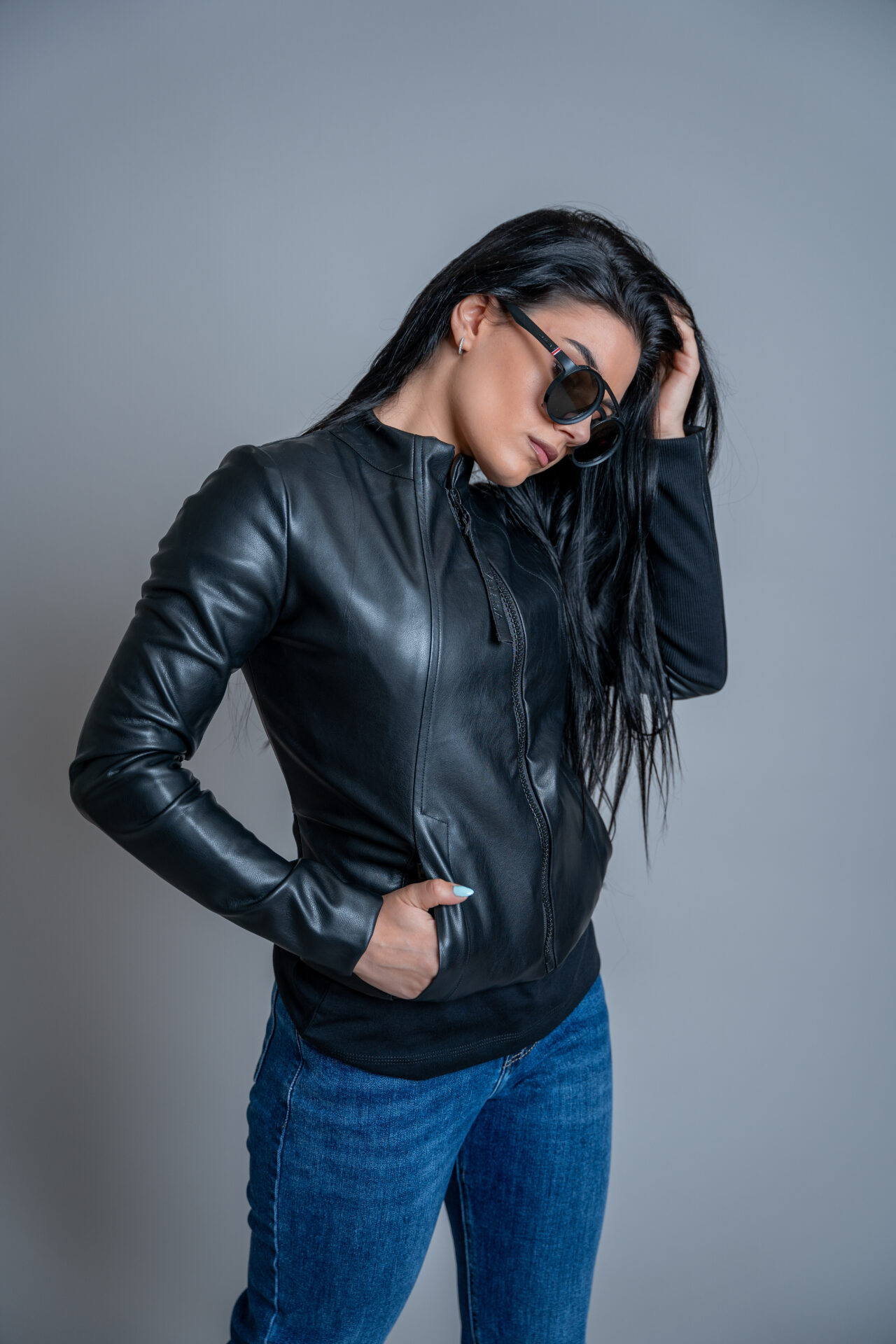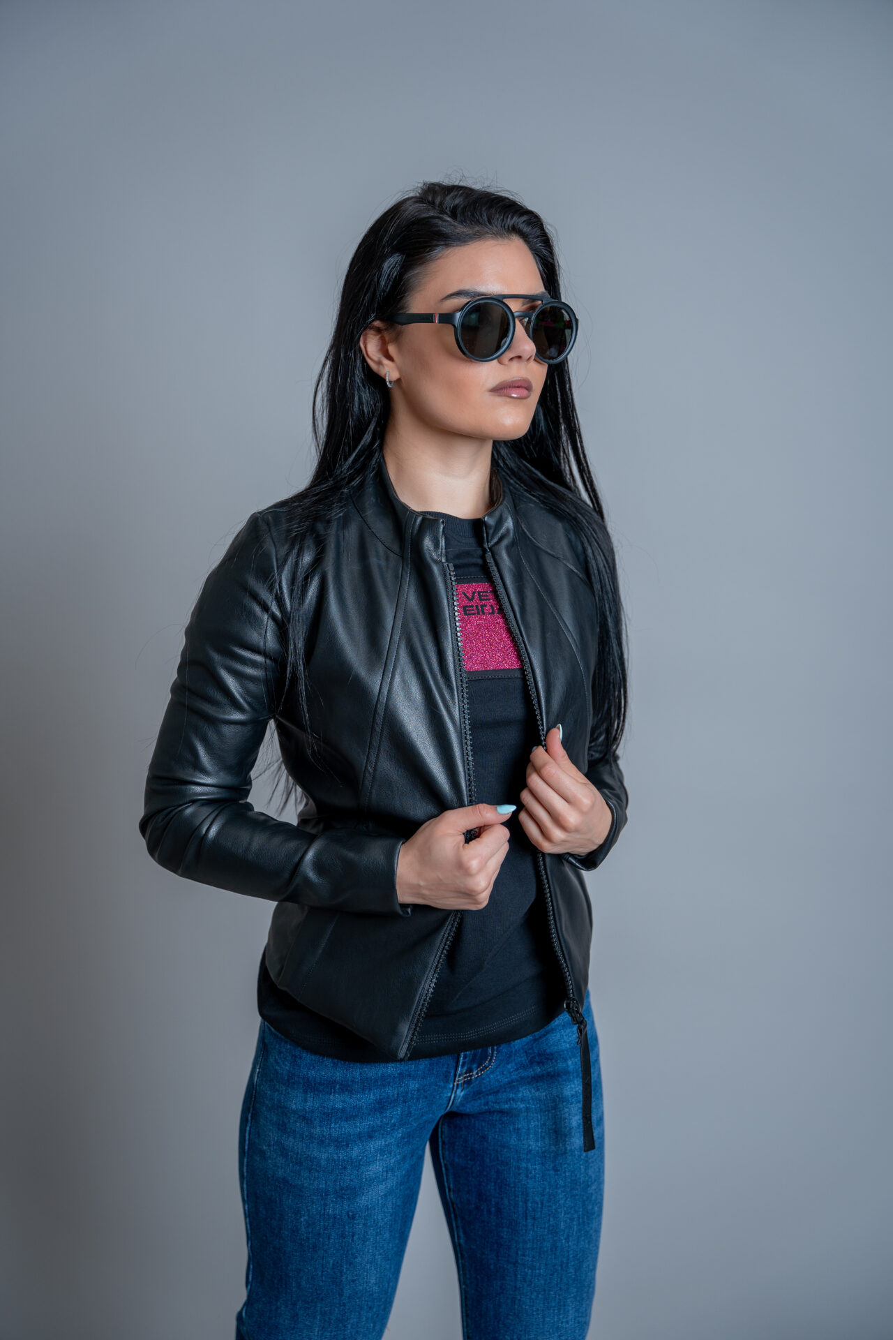 Дамско кожено яке veteida black-399