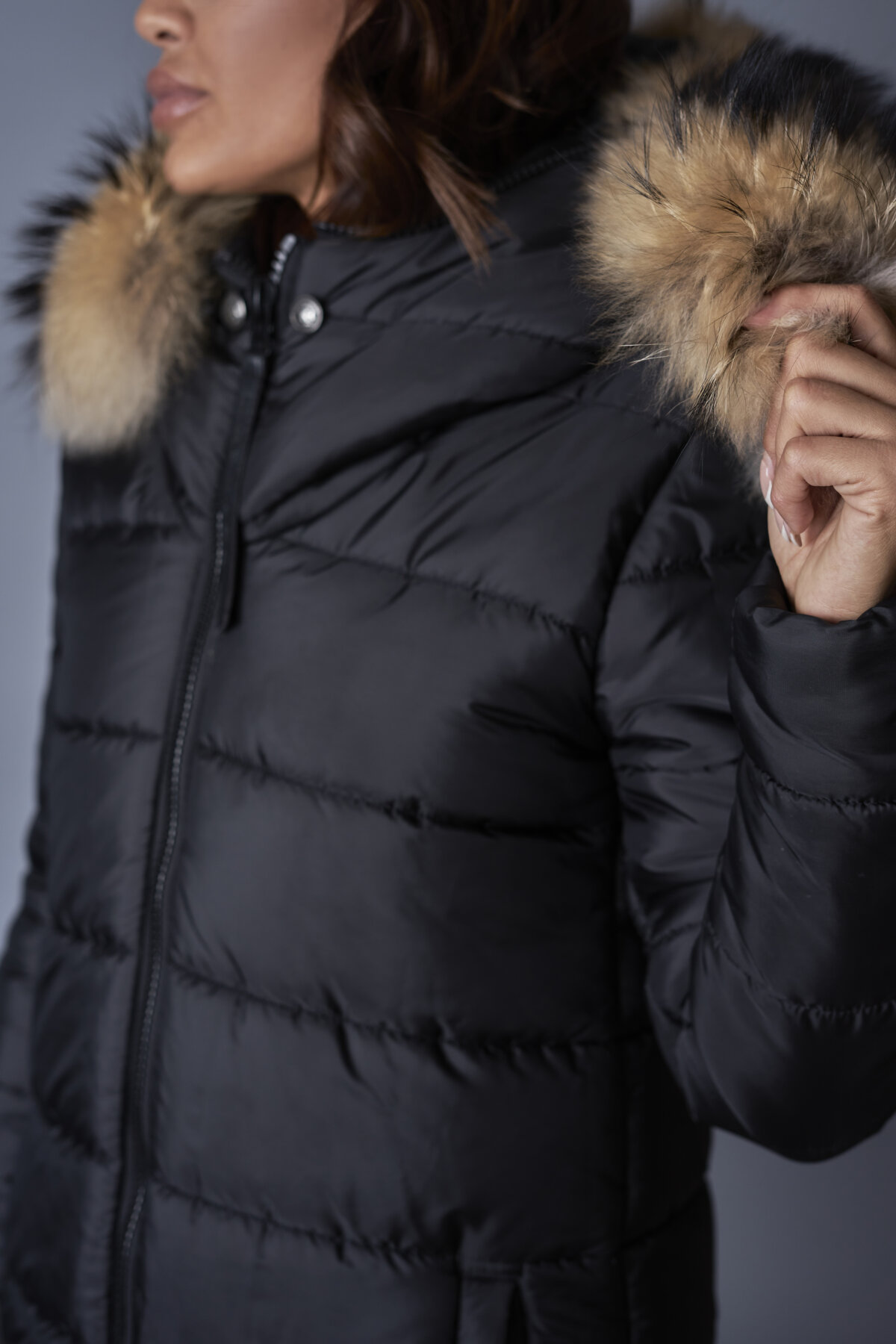 Естественият пух служи за допълнителна защита от студа, като осигурява топлина около врата и шията, които са по-чувствителни към студа.