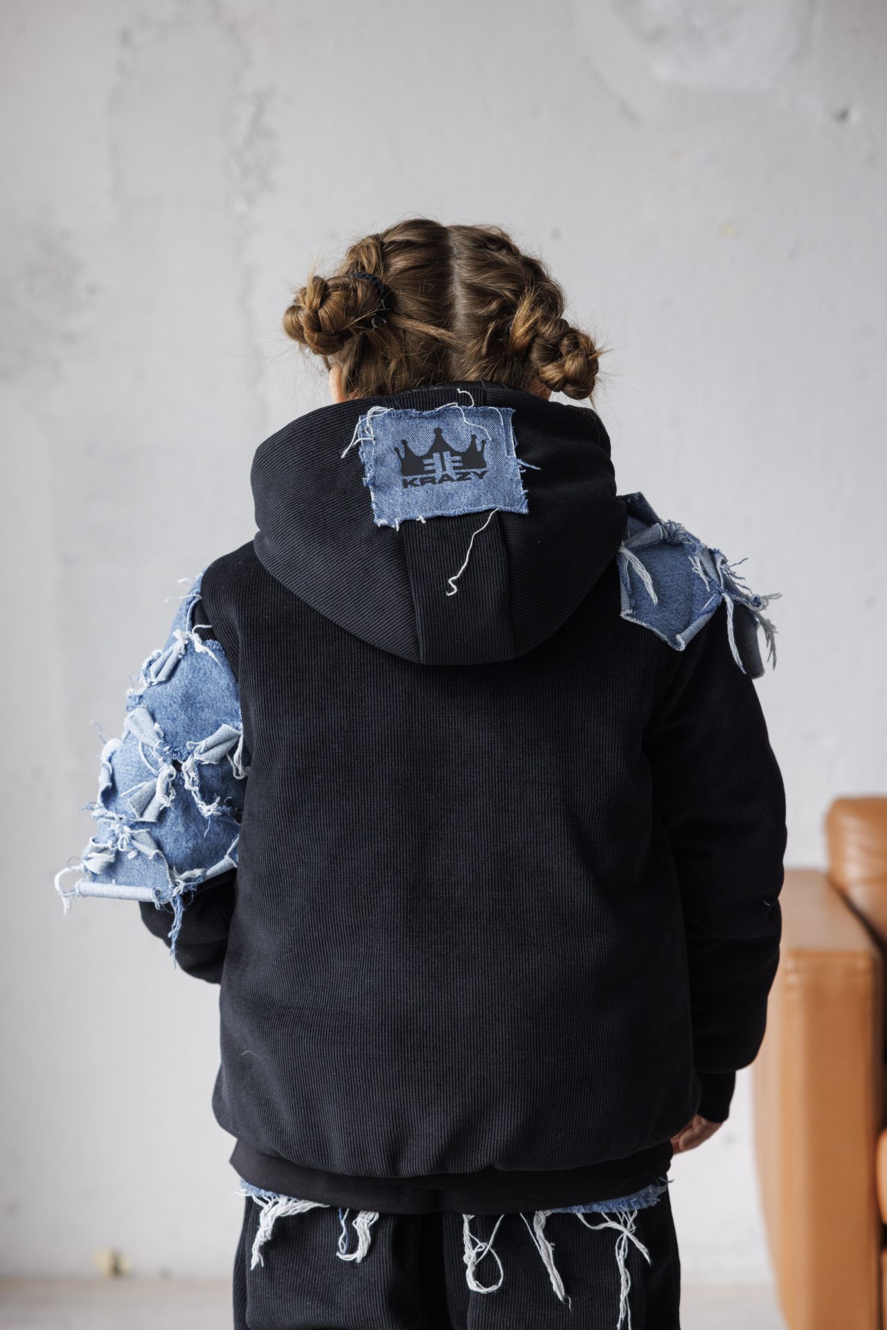 Открий яке K02 от VETEIDA – “съчетание на комфорт, качество и модерна визия. Кадифе, деним детайли и издръжлива вата за студените дни.