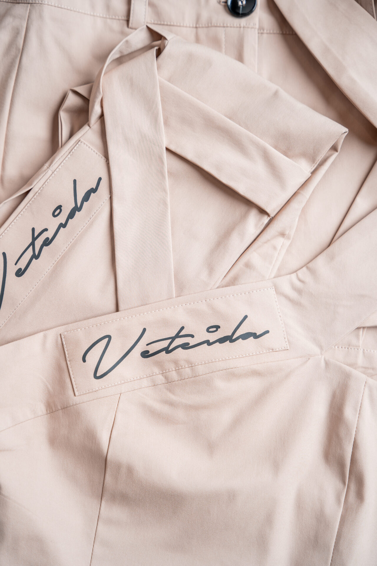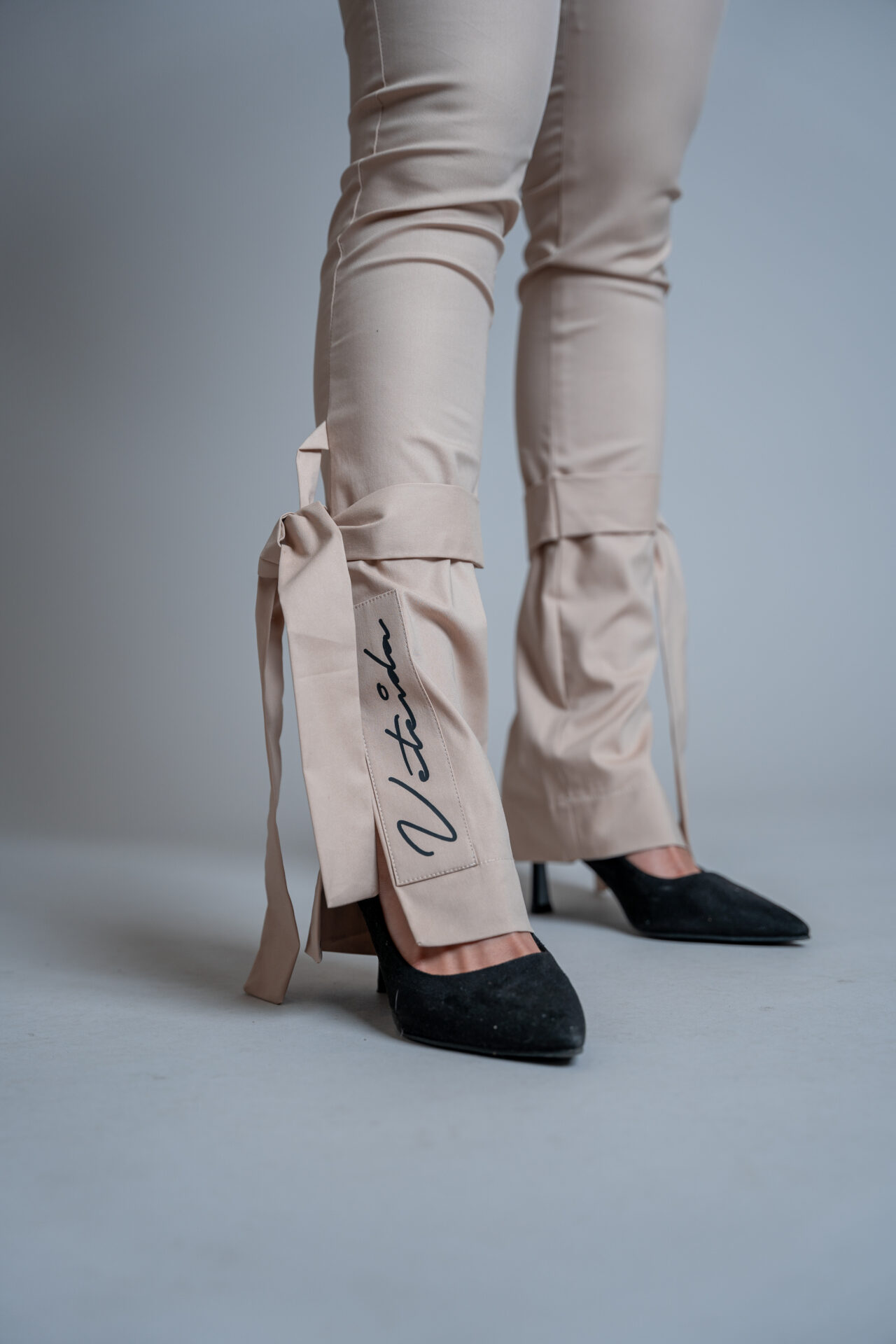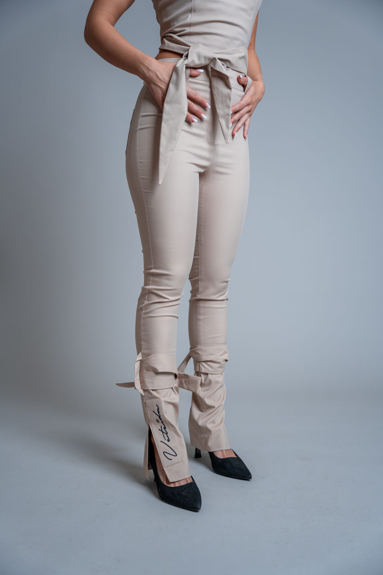 • Модерен комплект от две части – бюстие и панталон с едноцветен десен, подходящ за официални събития.