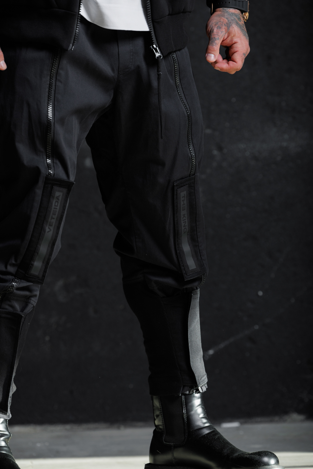Циповете, разположени стратегически по различни части на панталона, добавят динамика и индивидуалност, като същевременно осигуряват функционалност.