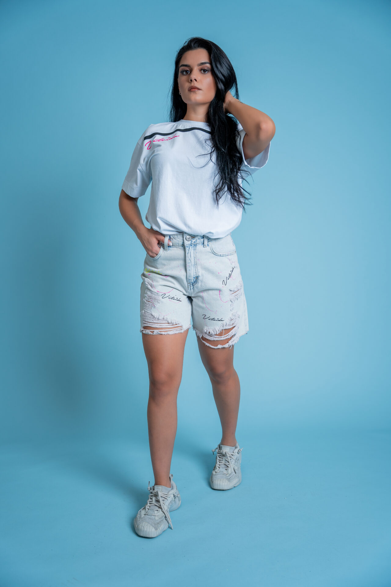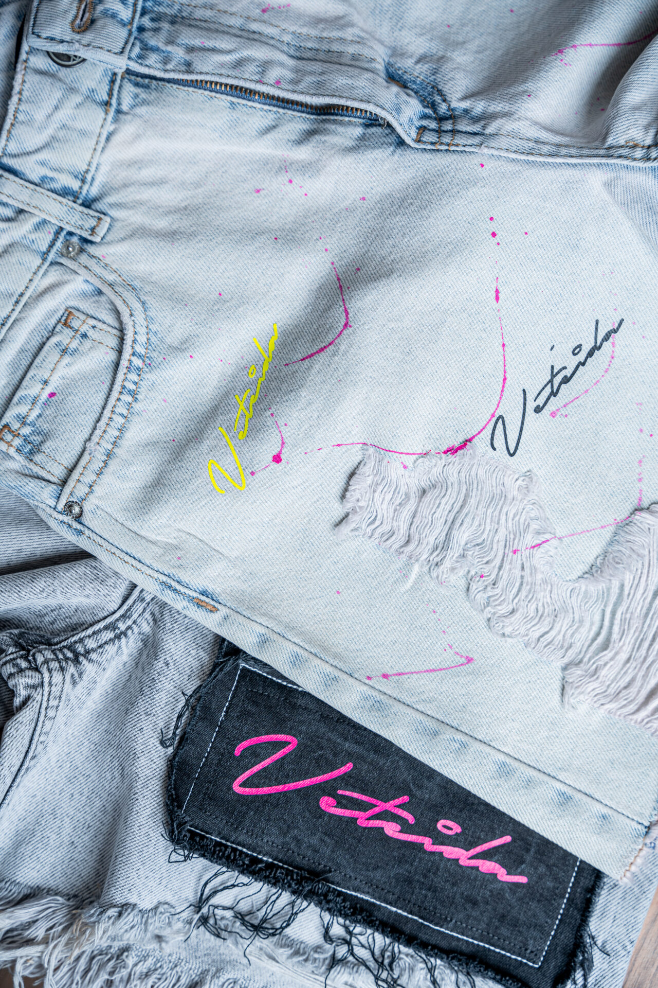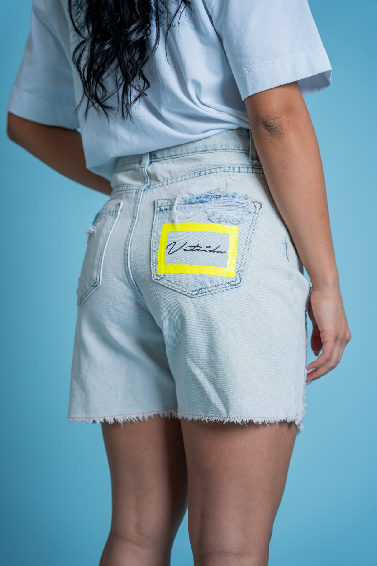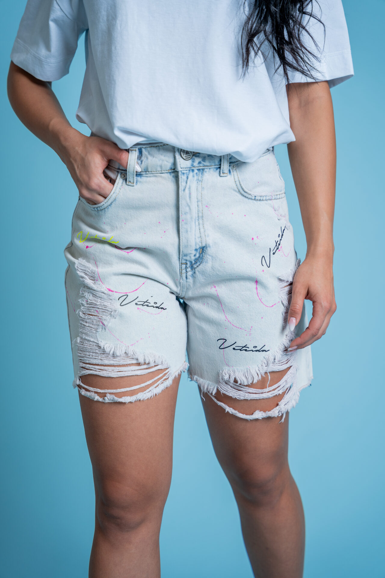 Къси панталони от деним с декоративни скъсвания-love me or leave me