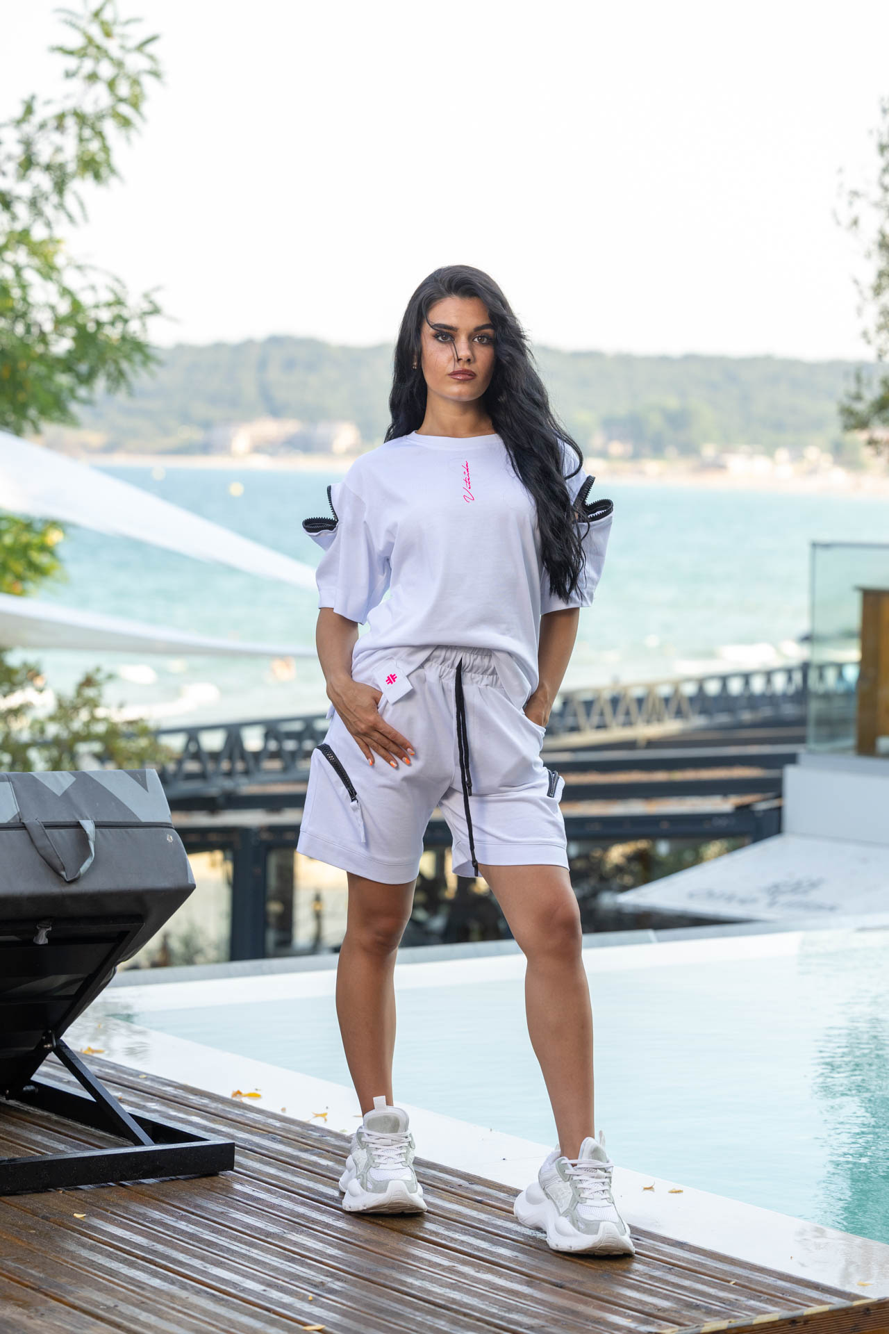 Комплект тениска и къси панталони с ефектни ципове white-661