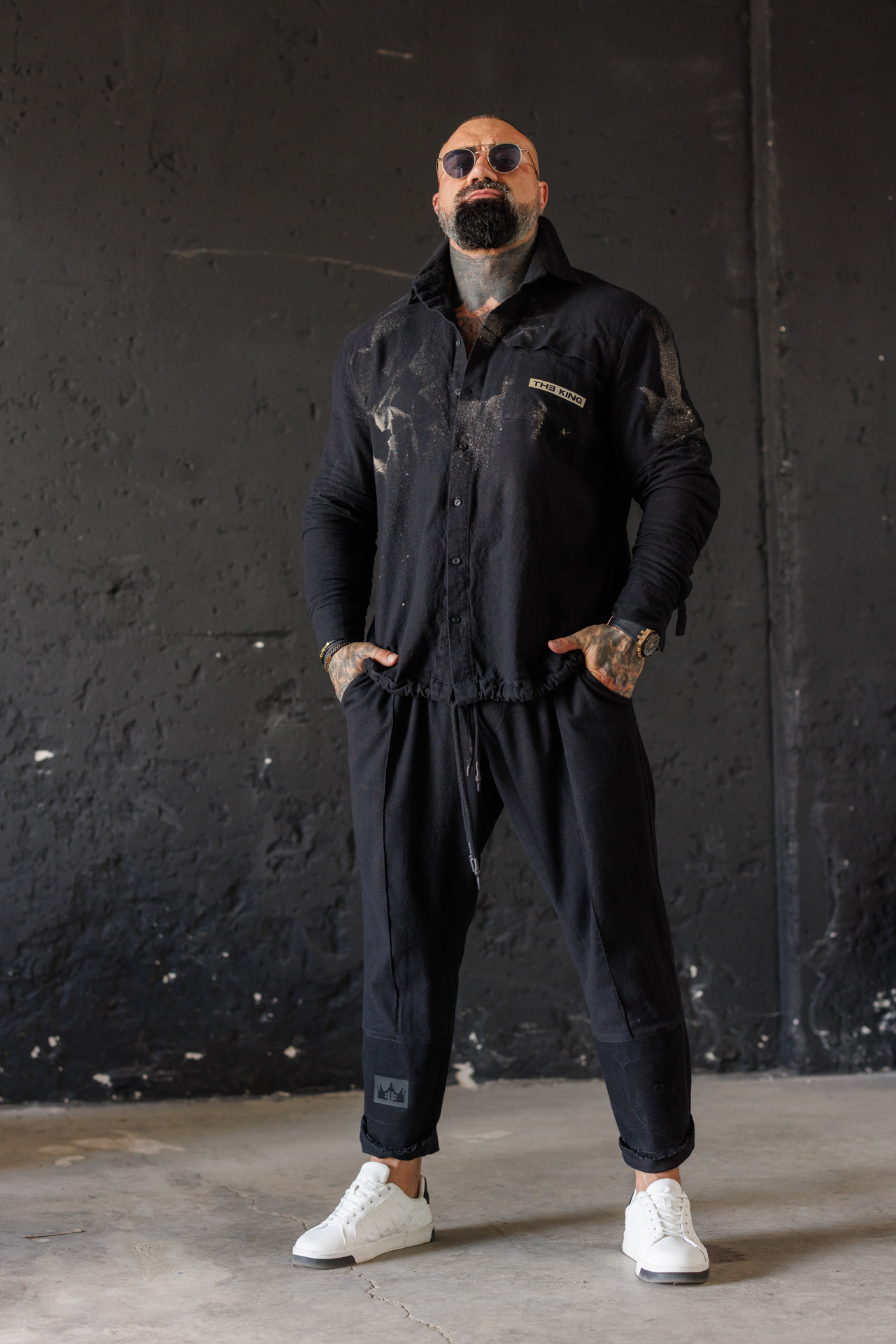Мъжки ленен летен комплект от две части в син цвят the king-м131