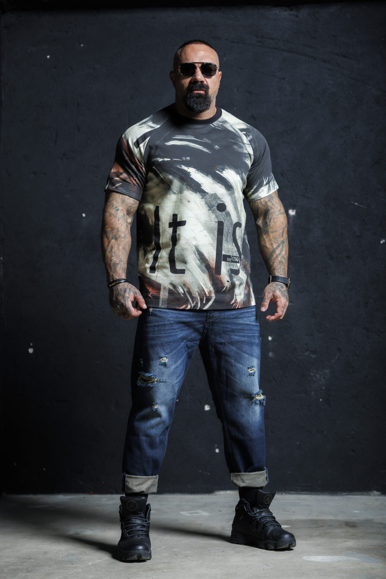 Мъжка дизайнерска тениска с авторски принт the king-м84