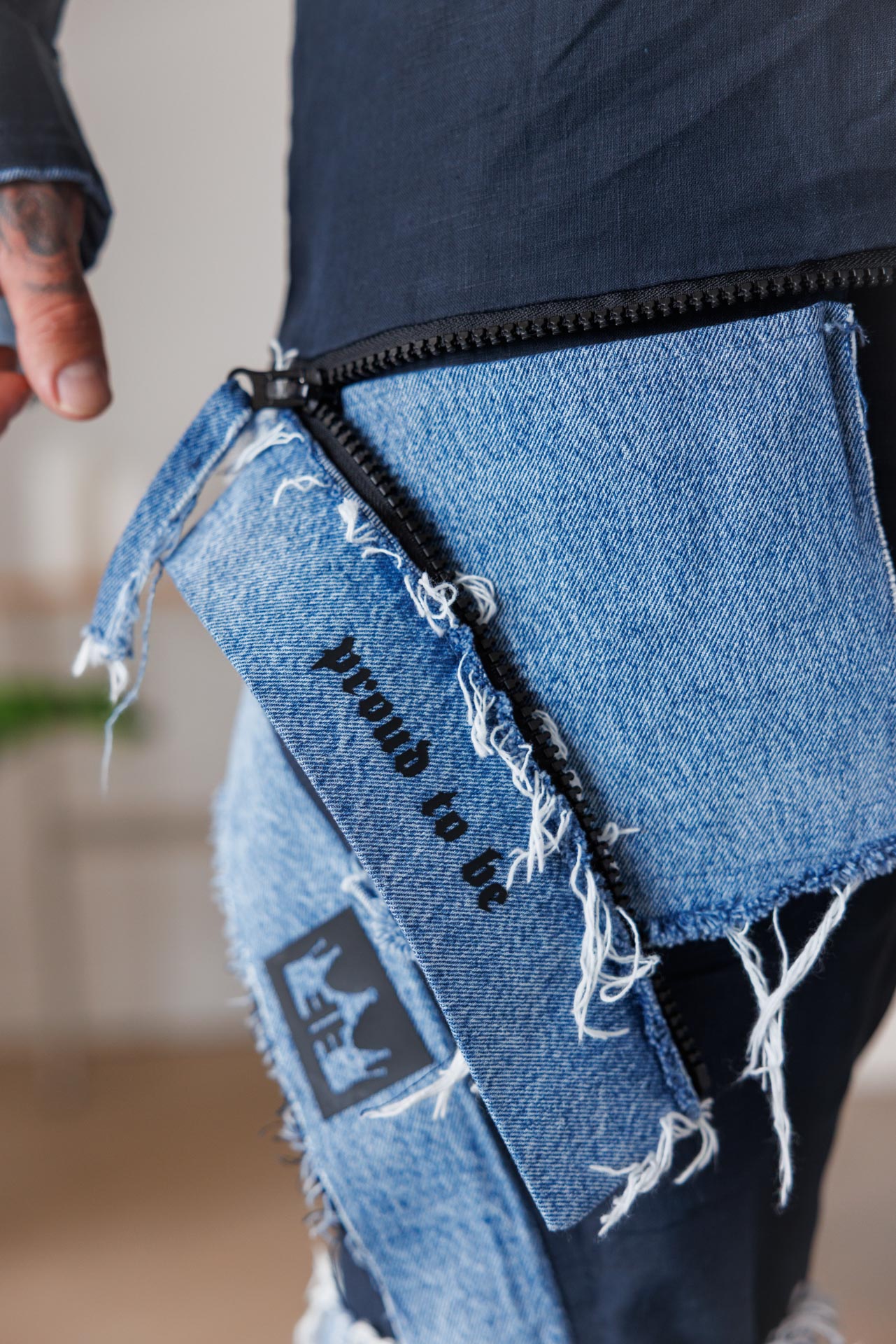 • Контрастните деним панели отстрани и в подгъвите носят уличен дух, а малкото лого отстрани подчертава брандираната идентичност.