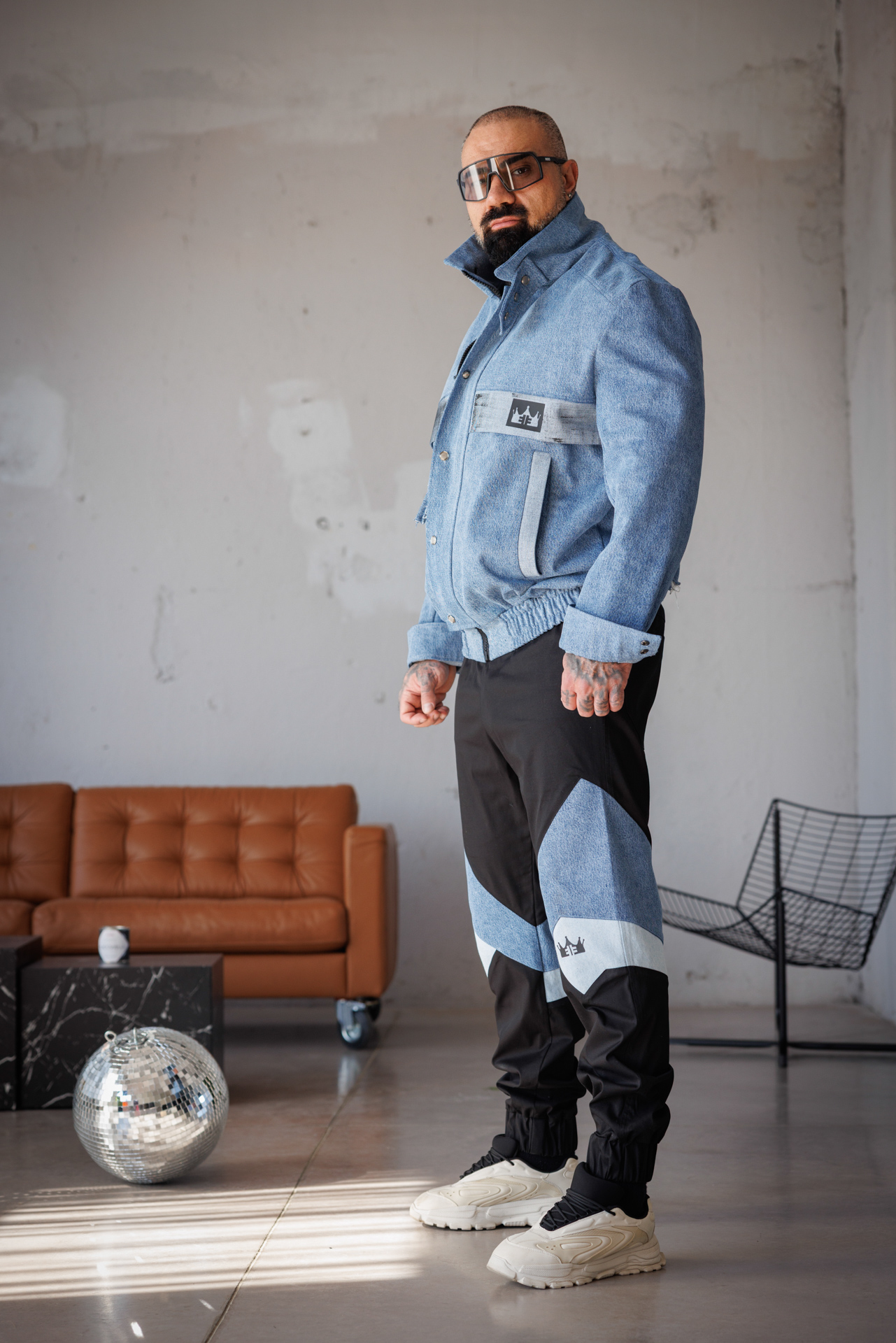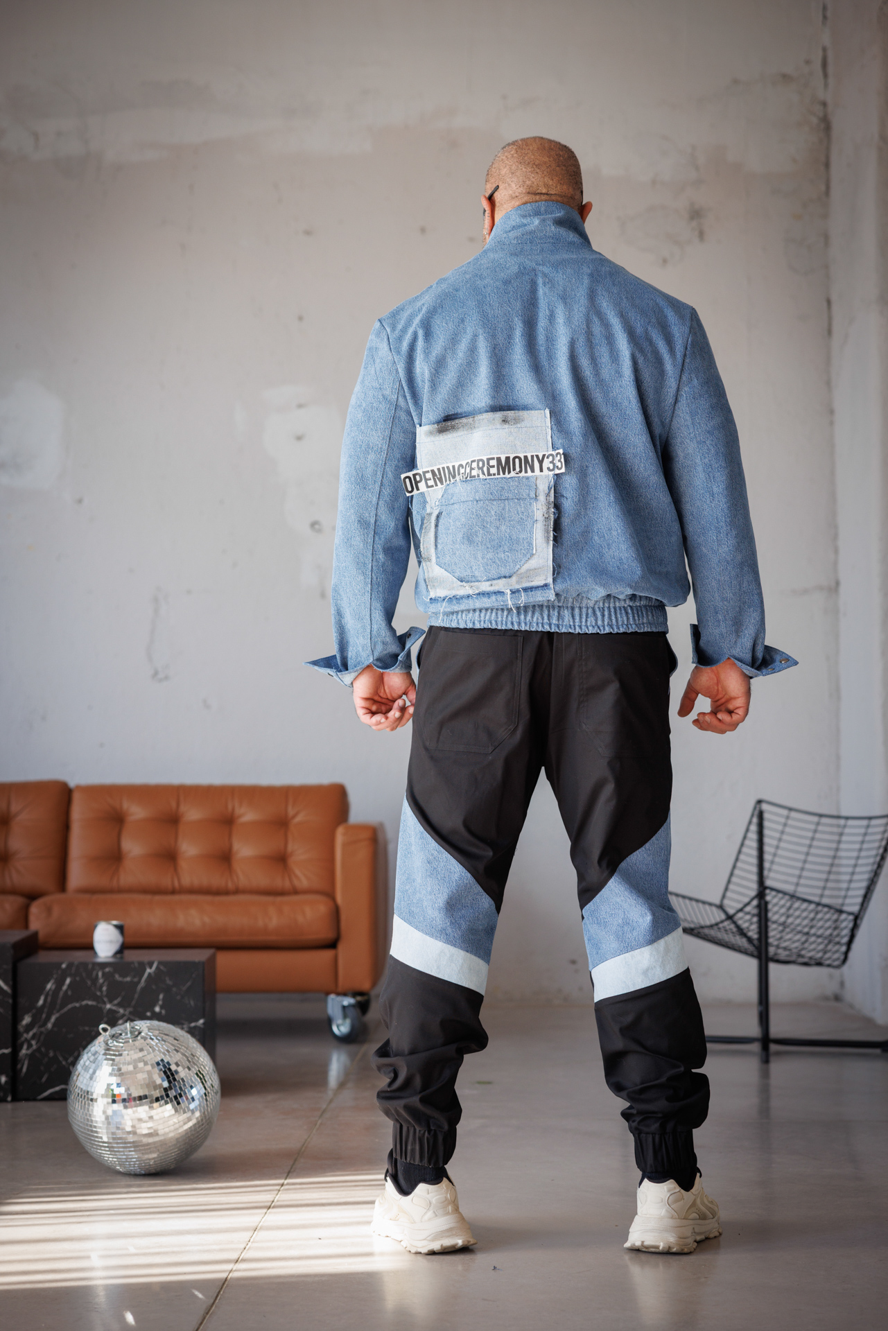 Мъжки дизайнерски панталон с дънков елемент съчетава модерния стил с класическата дънкова текстура, предлагайки уникален и елегантен външен вид.Дизайнът обикновено включва иновативни акценти, като дънкови вложки или декоративни шевове, които придават на модела съвременен и изтънчен стил.