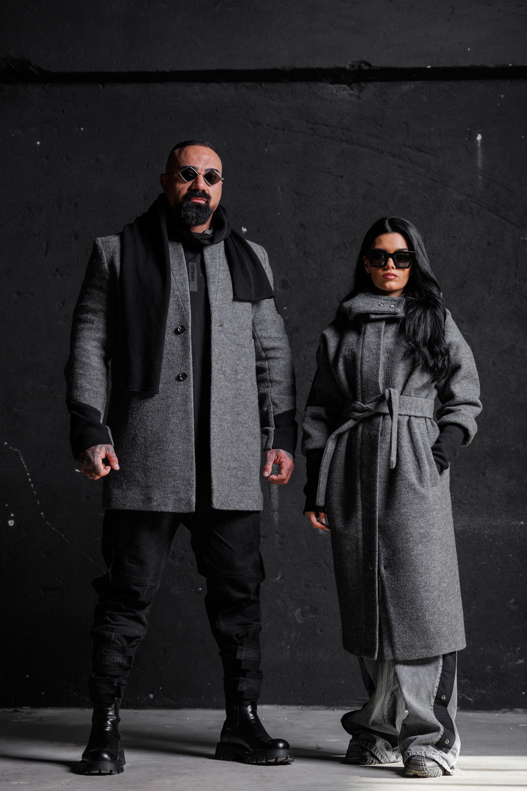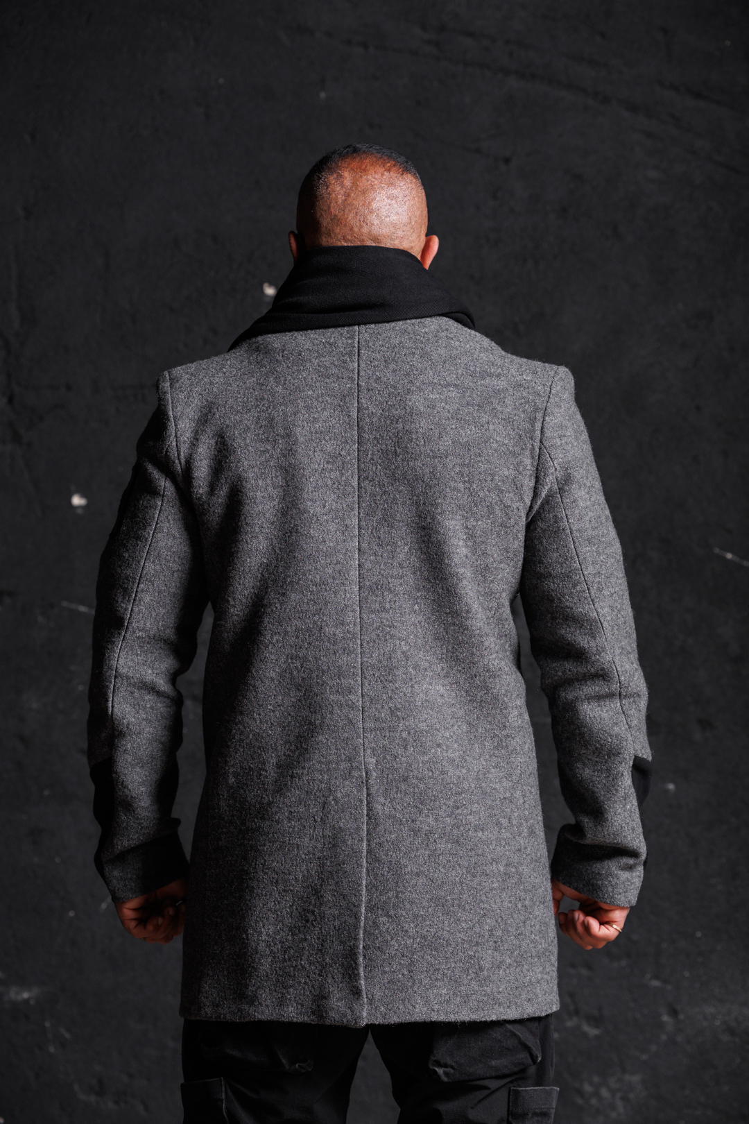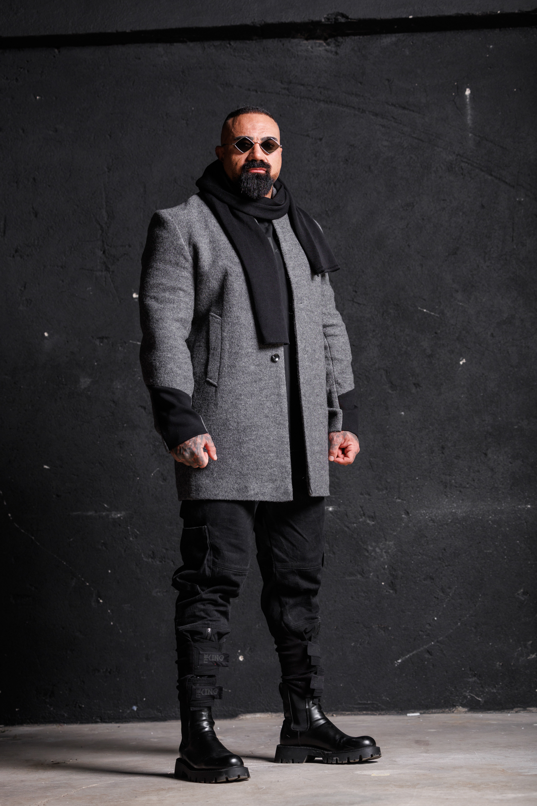 Мъжко дизайнерско зимно палто в сив цвят-м96
