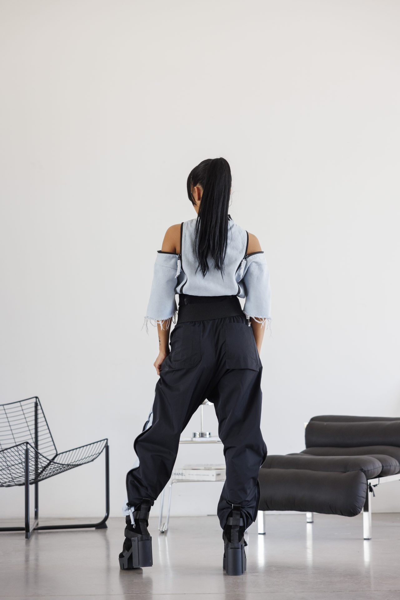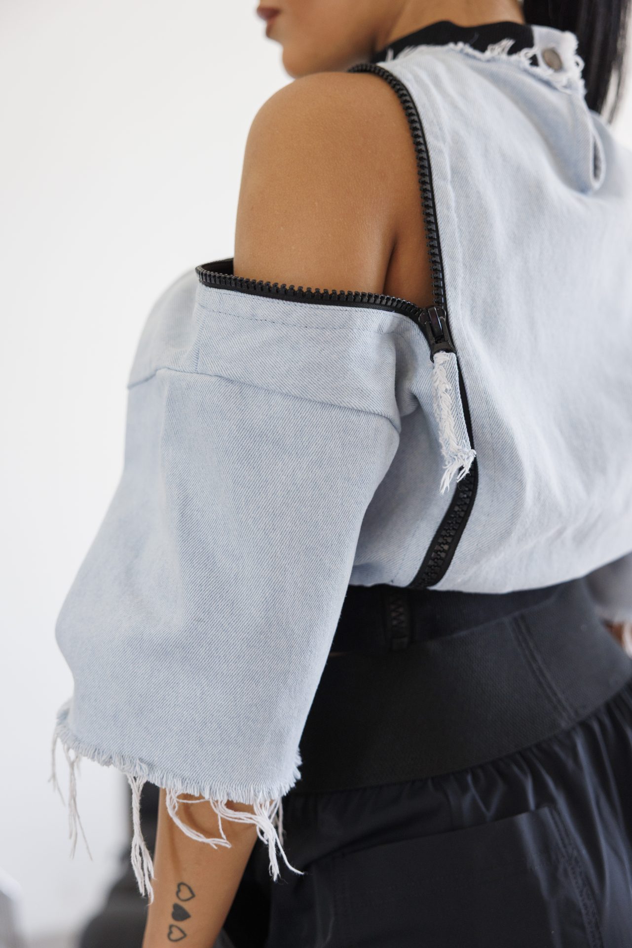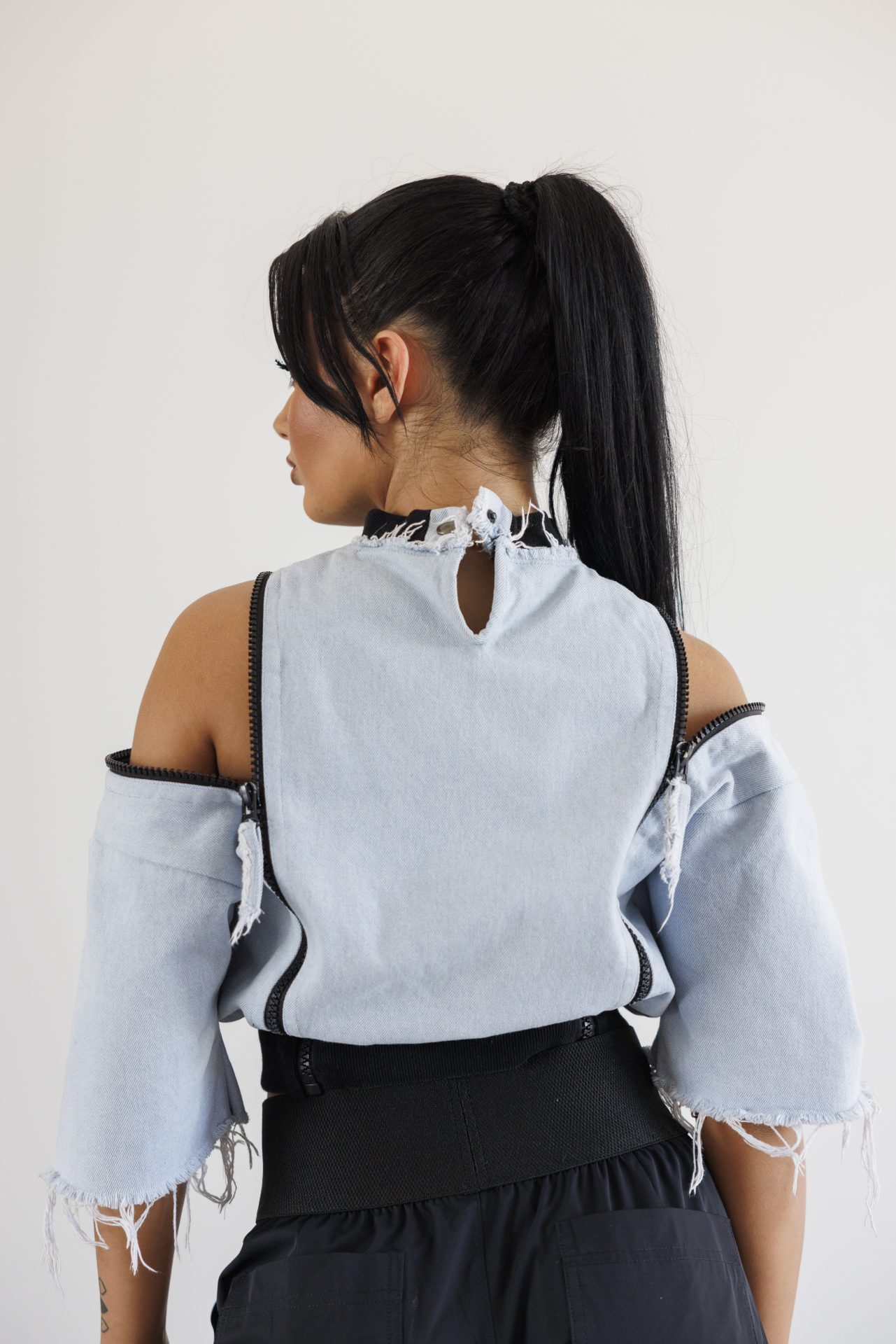 Модерен деним сет с открити линии и стилен акцент-650