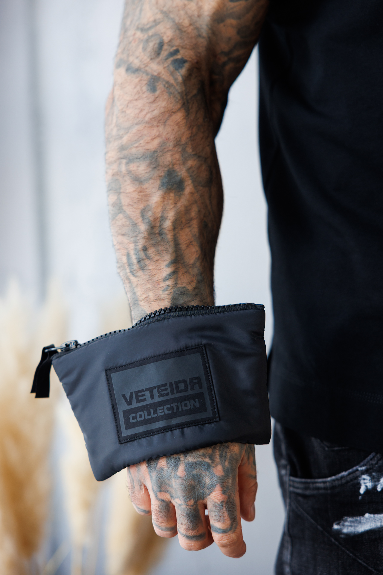 • Стилно и практично, това черно портмоне е изработено от лек и устойчив шушляк – материал.