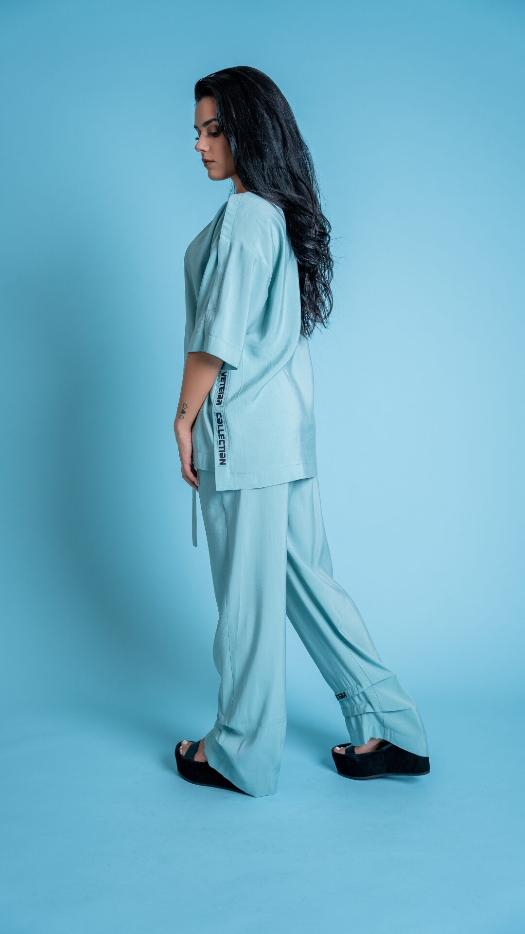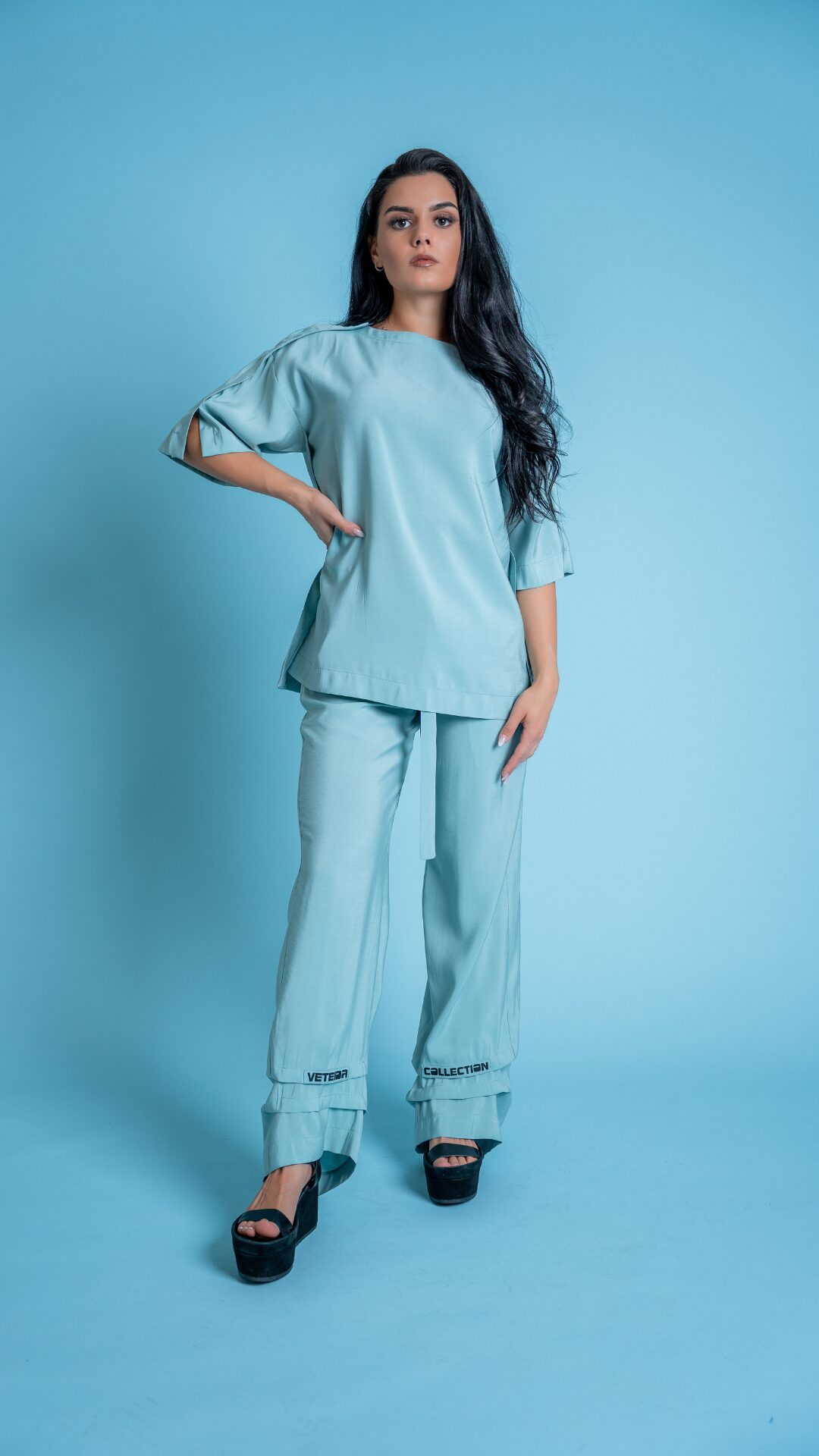 Съчетан с подходящи сандали или маратонки, летният комплект е практичен и стилен избор за горещите месеци, като същевременно запазва елегантността и свежестта на визията.