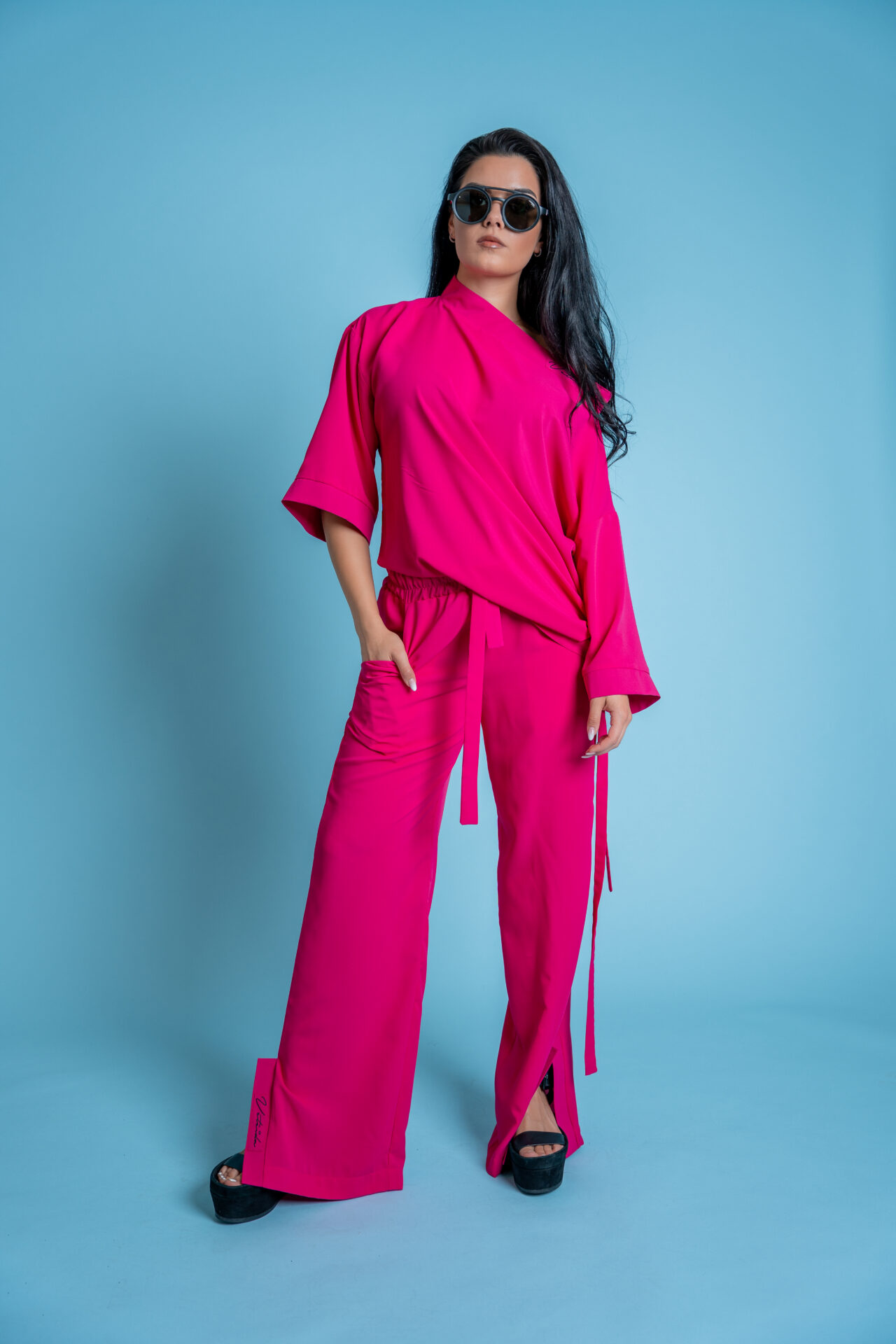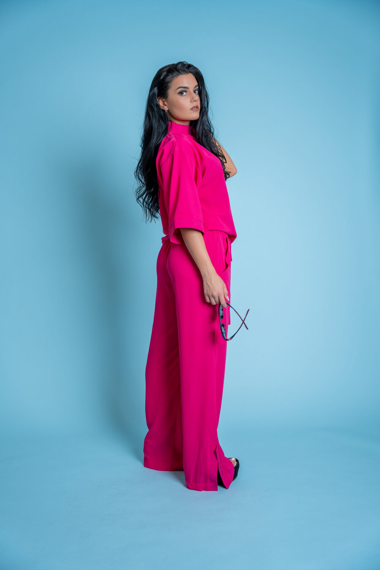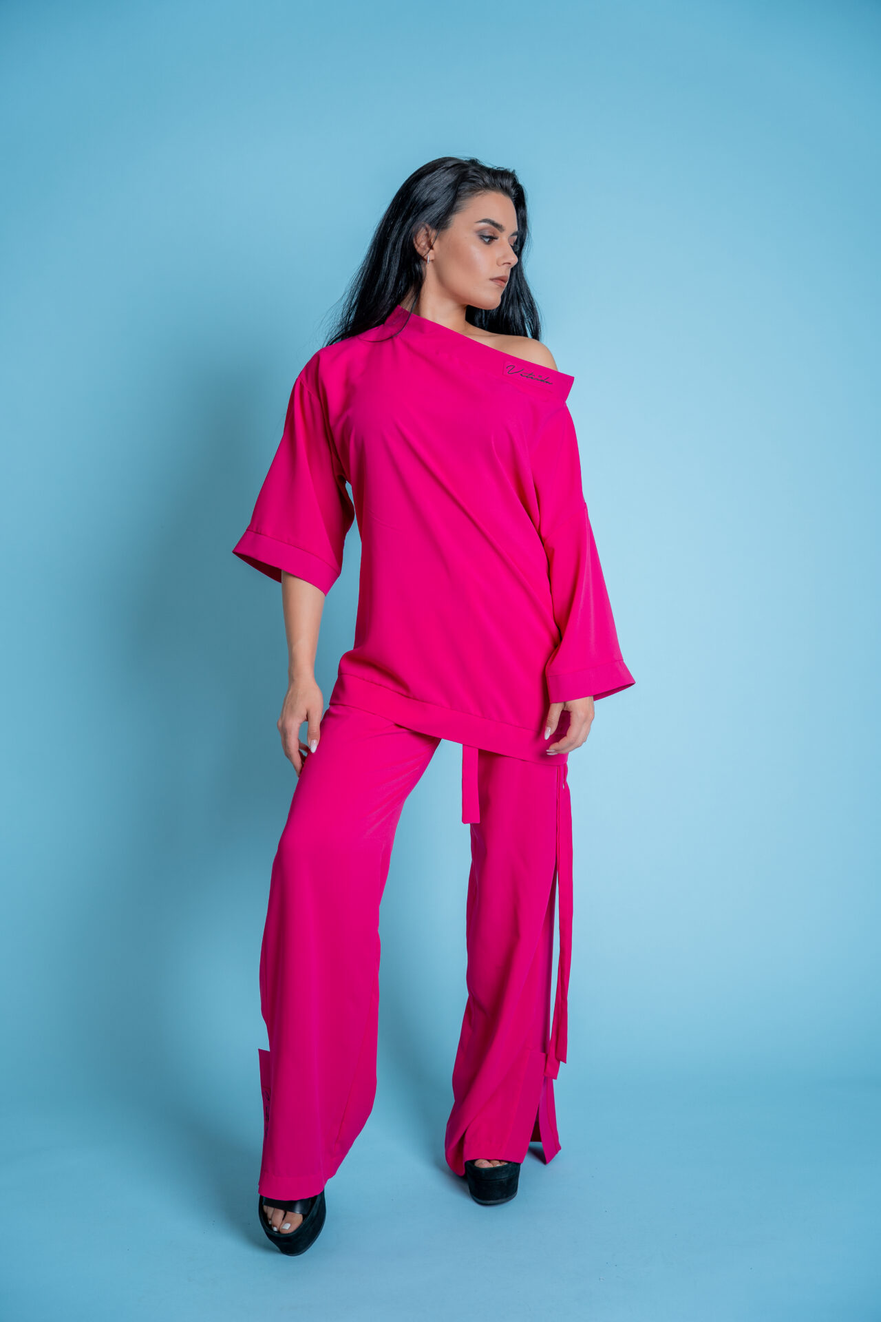 Стилен дамски комплект в цвят циклама-578
