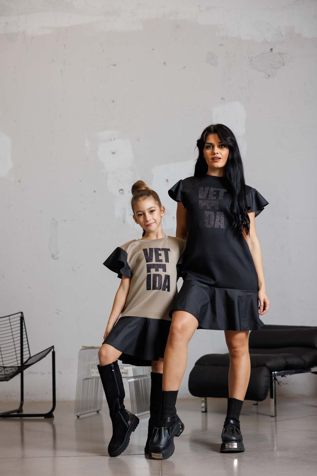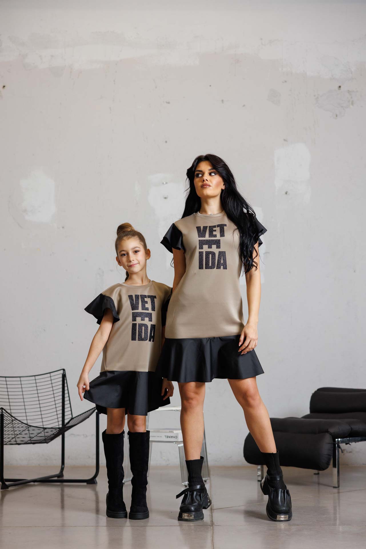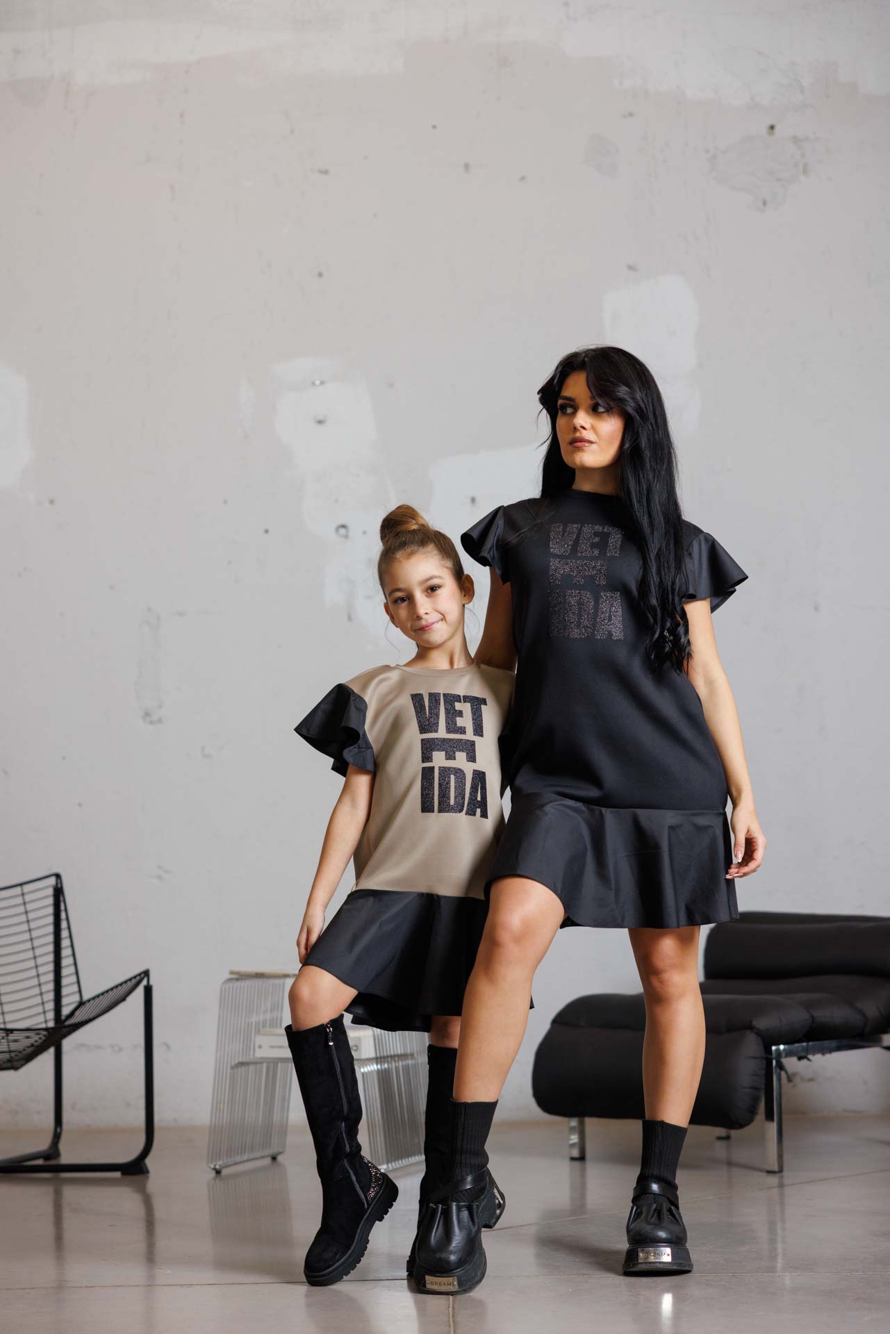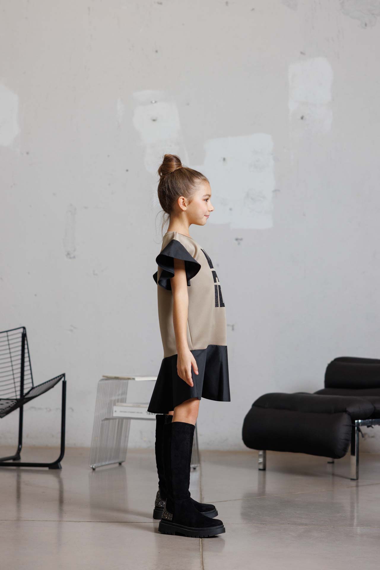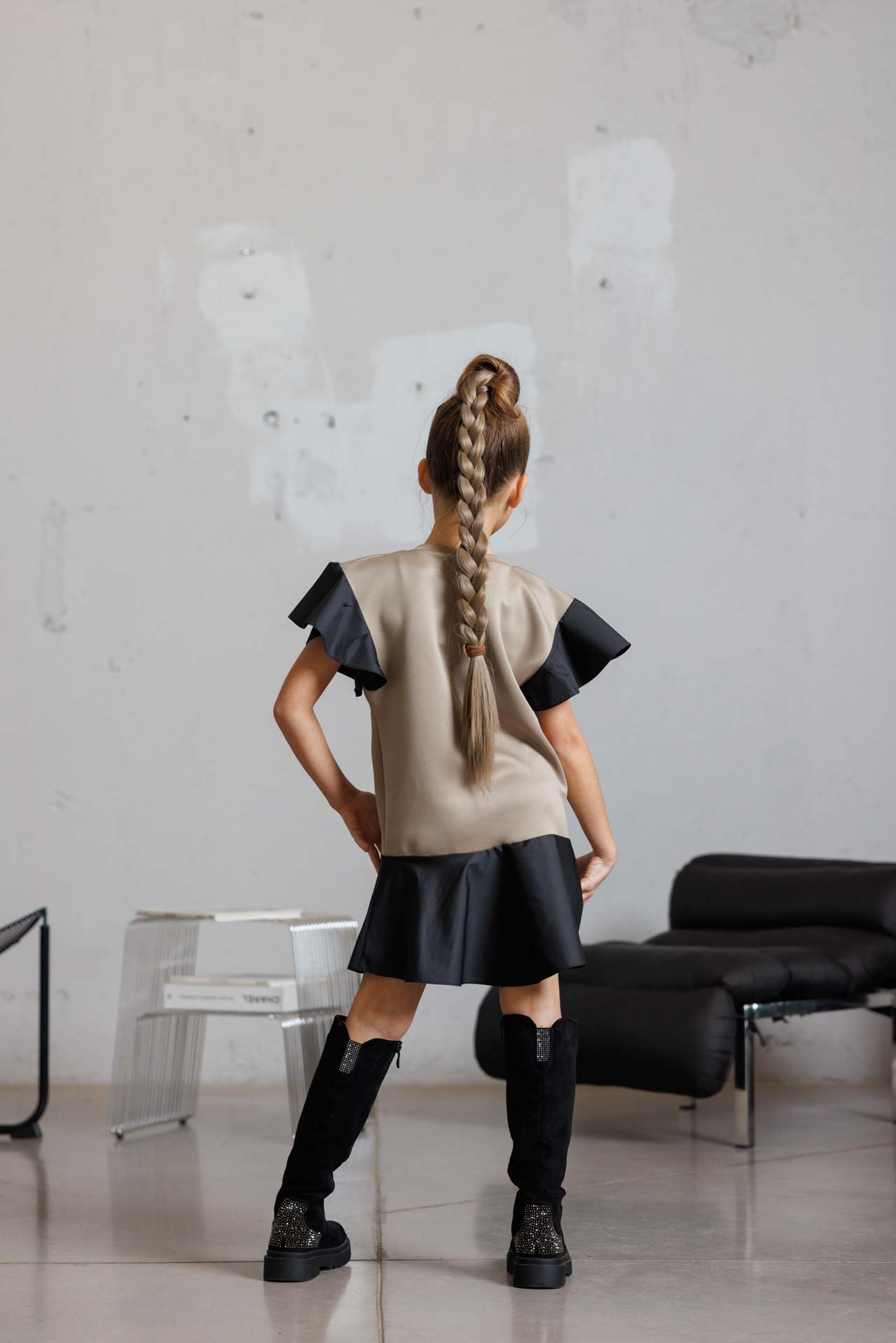 Стилна детска рокля с модерен силует в черен цвят-к022