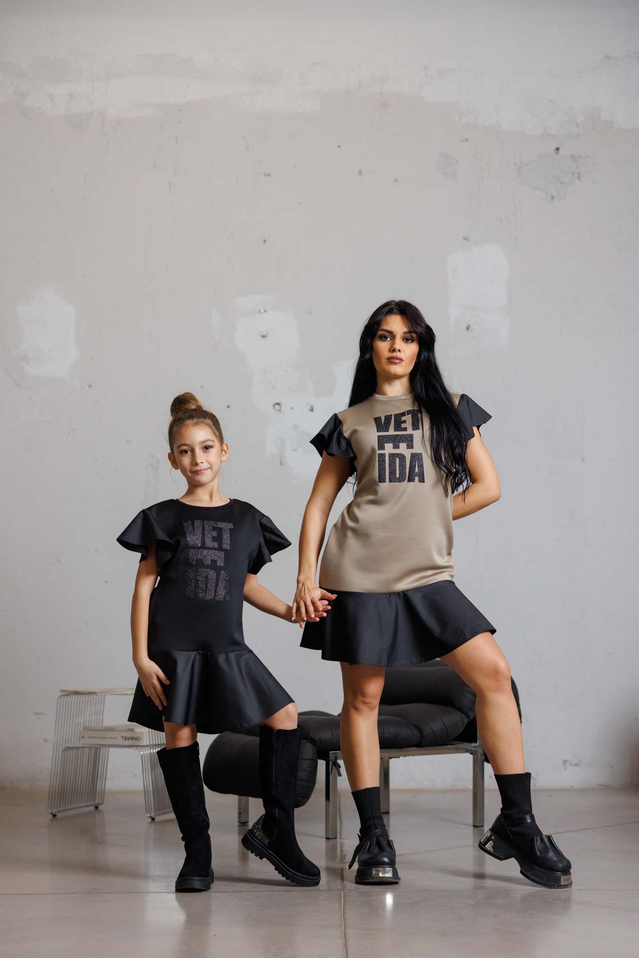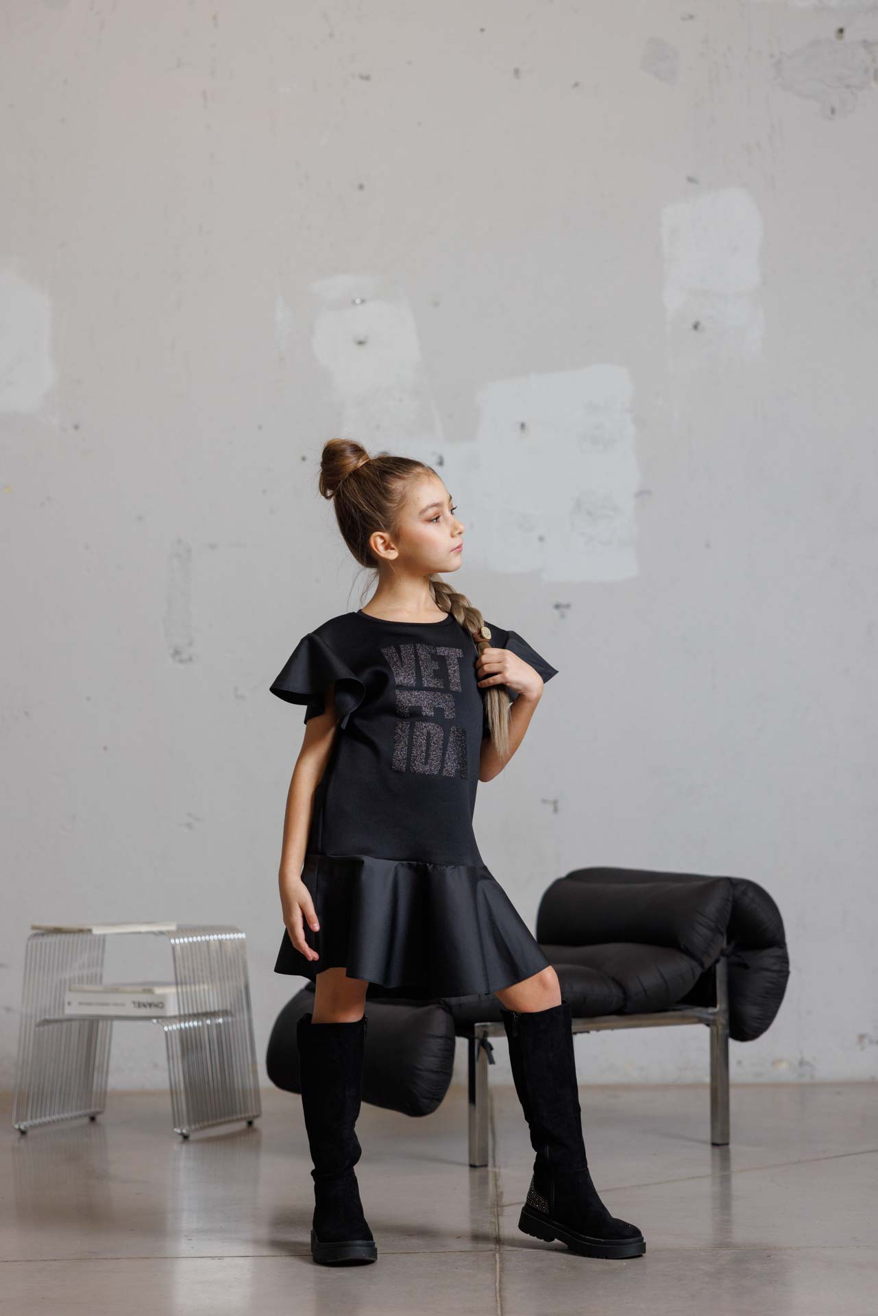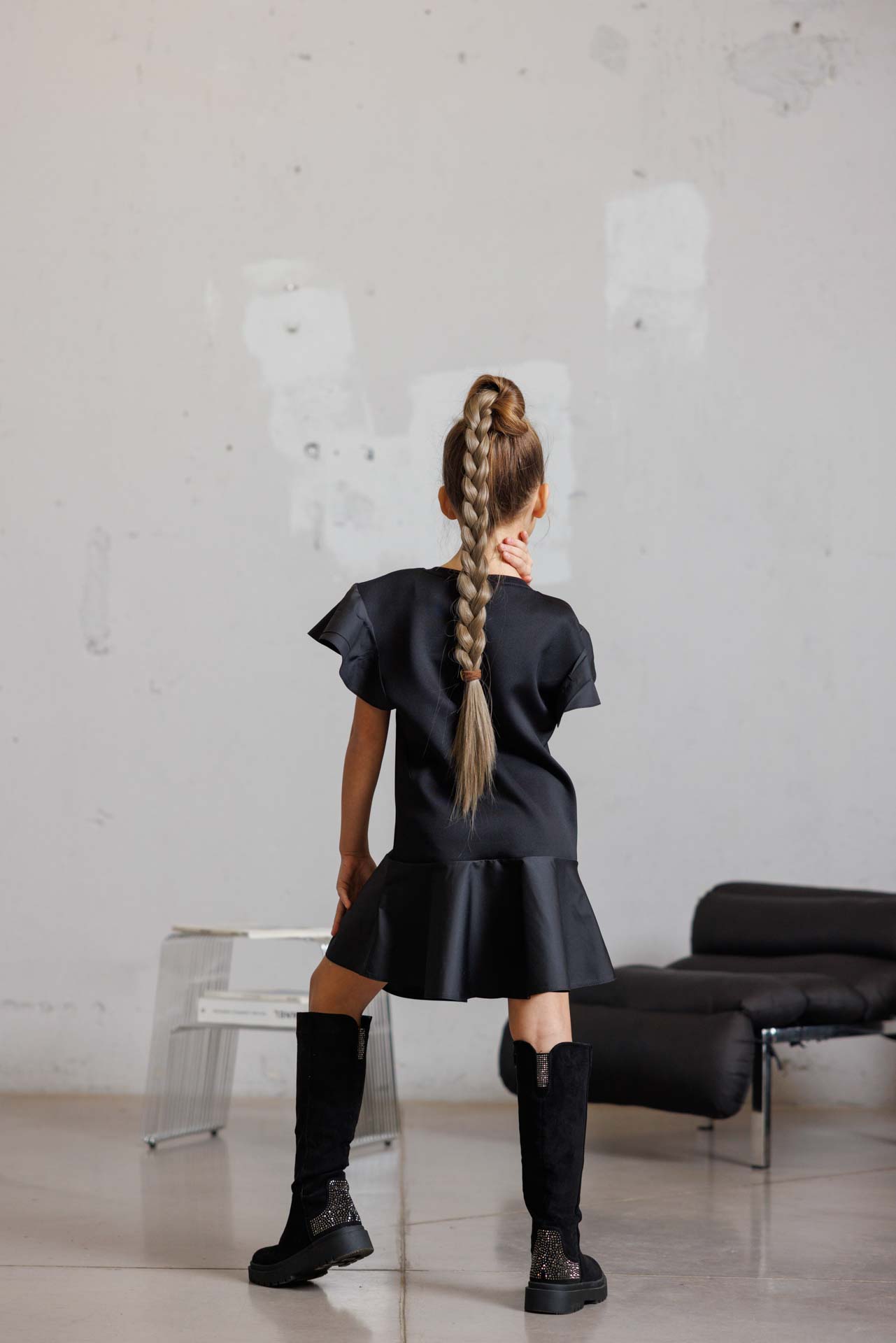 Стилна детска рокля с модерен силует в черен цвят-к022
